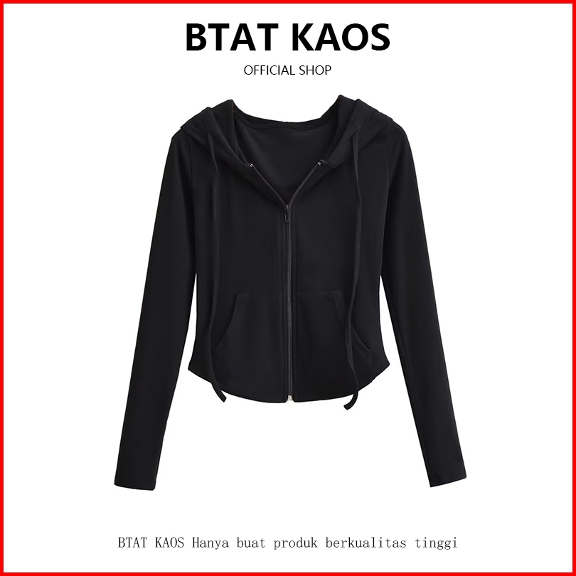 Btat Premium Wanita Polos Crop Zipper Hoodie Jacket Cokelat Wanita Korean Style