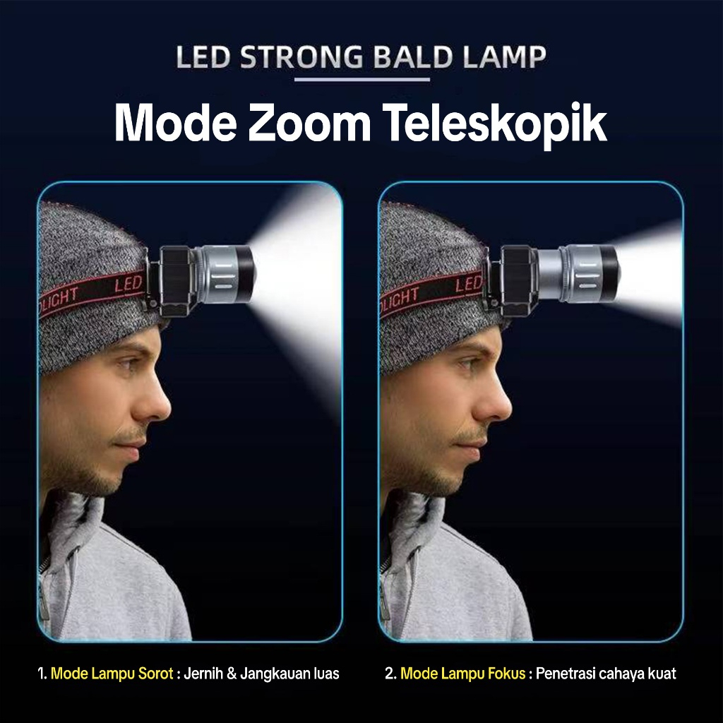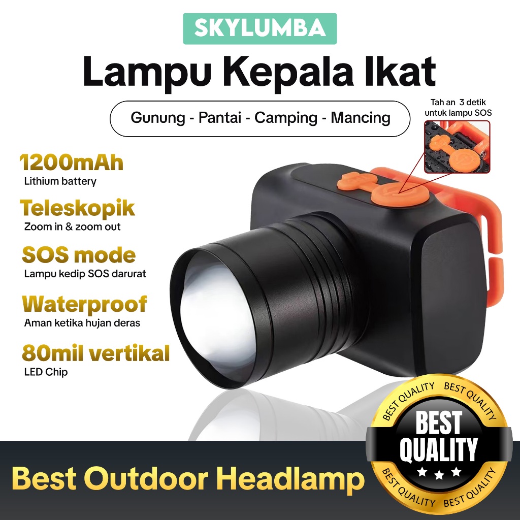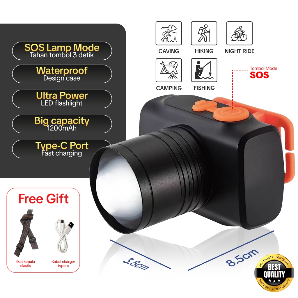 SKYLUMBA 4500MAH SENTER KEPALA LED SUPER TERANG 60W RECHARGEABLE USB-C BATERAI TAHAN LAMA ADAPTOR 5V2A LAMPU CAMPING HIKING - HL01