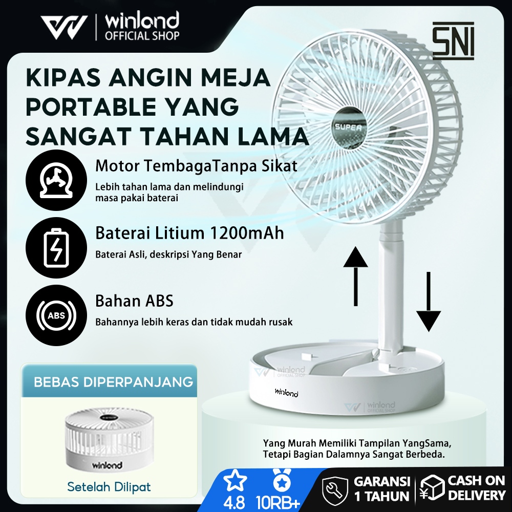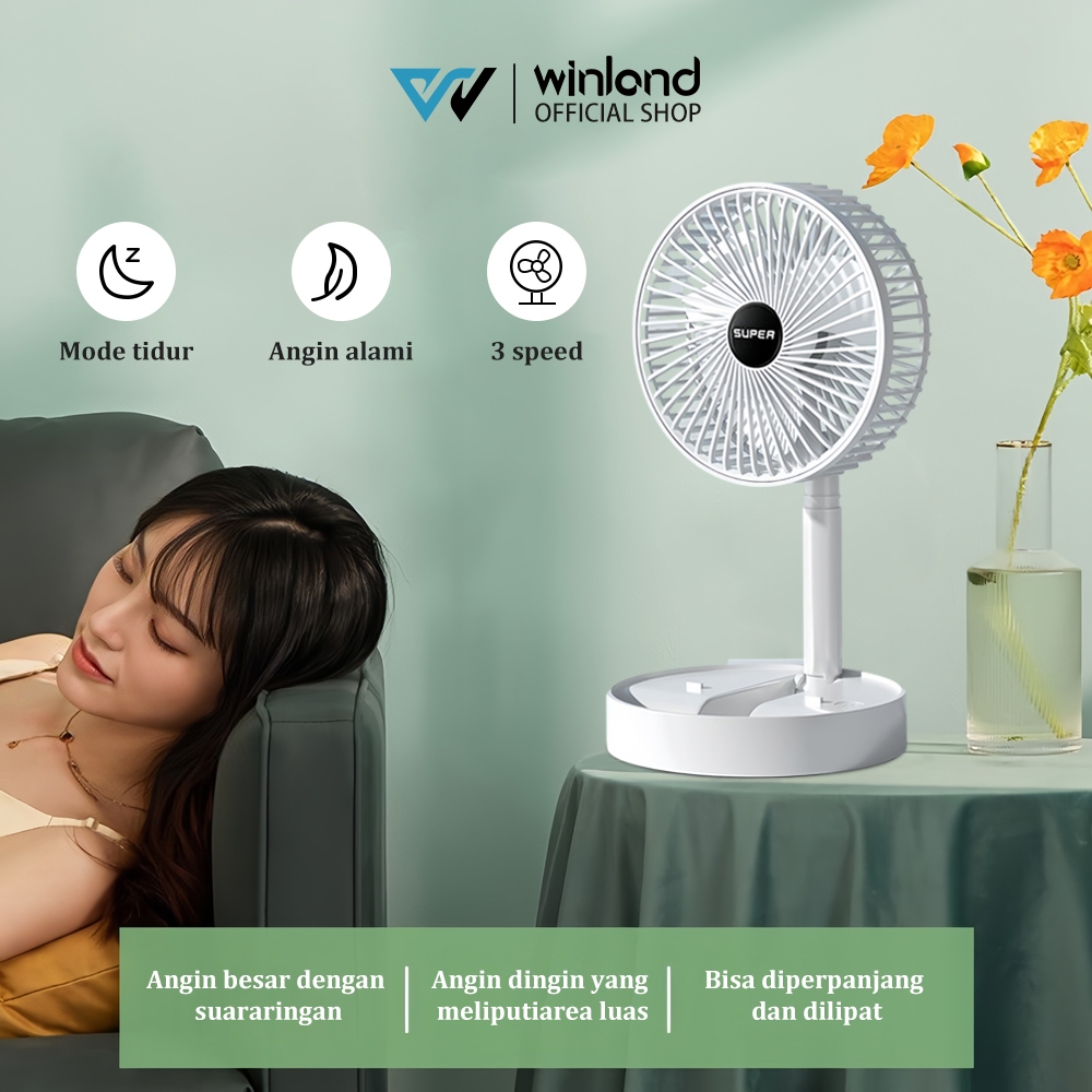 Winland Kipas Angin Lipat Kipas Angin mini portable Meja Wireless Rotasi 180° Portable Mini Fan Recharge