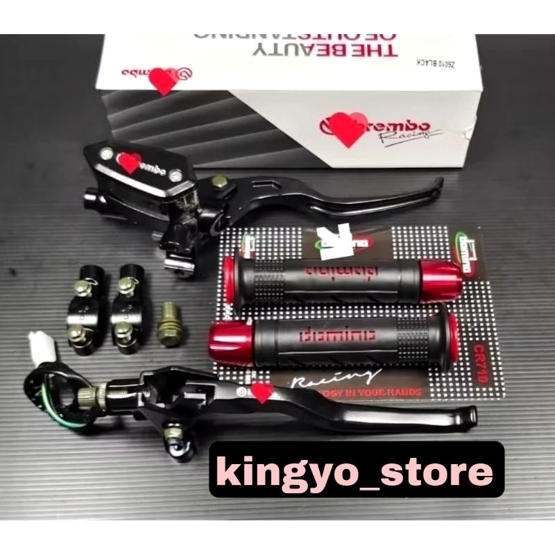 PROMO PAKET SET 3in1 MASTER REM TIPE OVAL + HANDGRIP SISIK / GARIS + JALU STANG CNC UNIVERSAL
