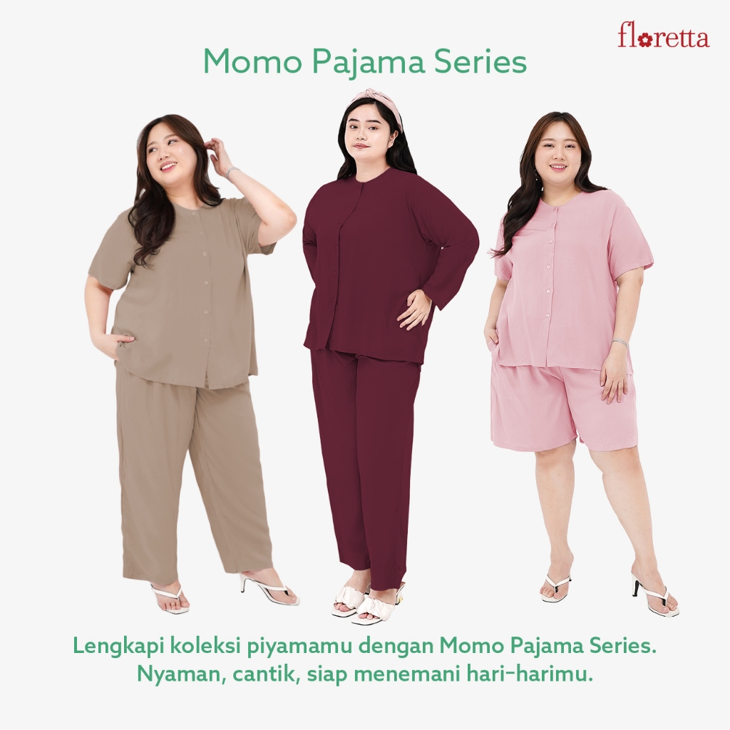 Baju Tidur Wanita Piyama One Set Celana Pendek Katun Rayon Jumbo XXL LD 130 Momo Floretta