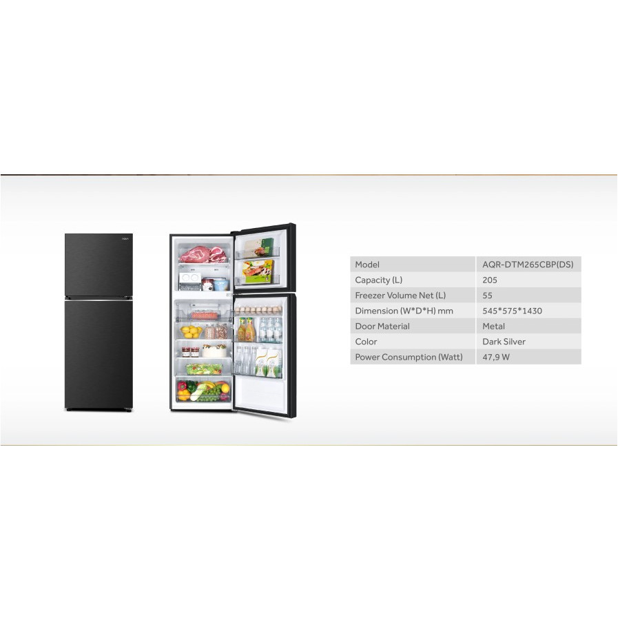 Kulkas 2 Pintu AQUA DTM 265 CBP DS Low Watt 260 Liter 48 WATT No Frost 7 TH