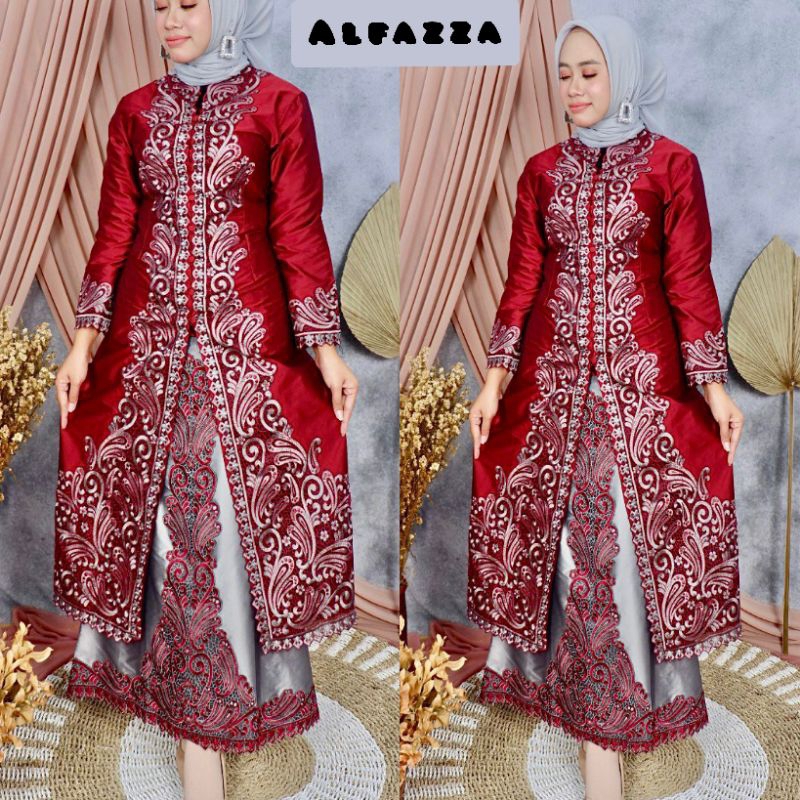 Set Jom-Jom Stelan Rok Sateen Bridal Combinasi Bordir,Kebaya Setrok Bordir Kebeya Modern Baju Pesta Elegant