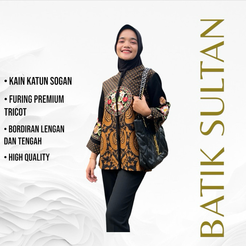 Atasan Batik Blouse Wanita Bordiran Premium Elegan l Batik Cewe Mewah Kantor Kondangan Terkini Kain Sogan Exclusive Full Furing Lapisan Tricot Waffle