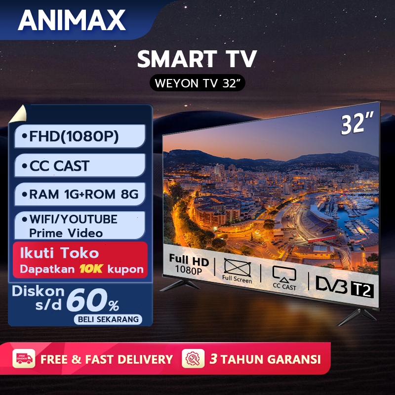 Animax Smart TV LED 32 inch Digital TV 32 Inch 43 Inch Televisi LED FHD Yube-Web Browser-WIFI