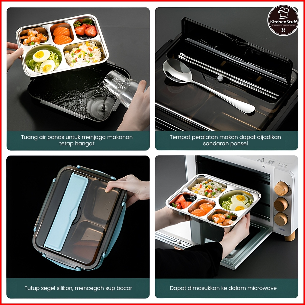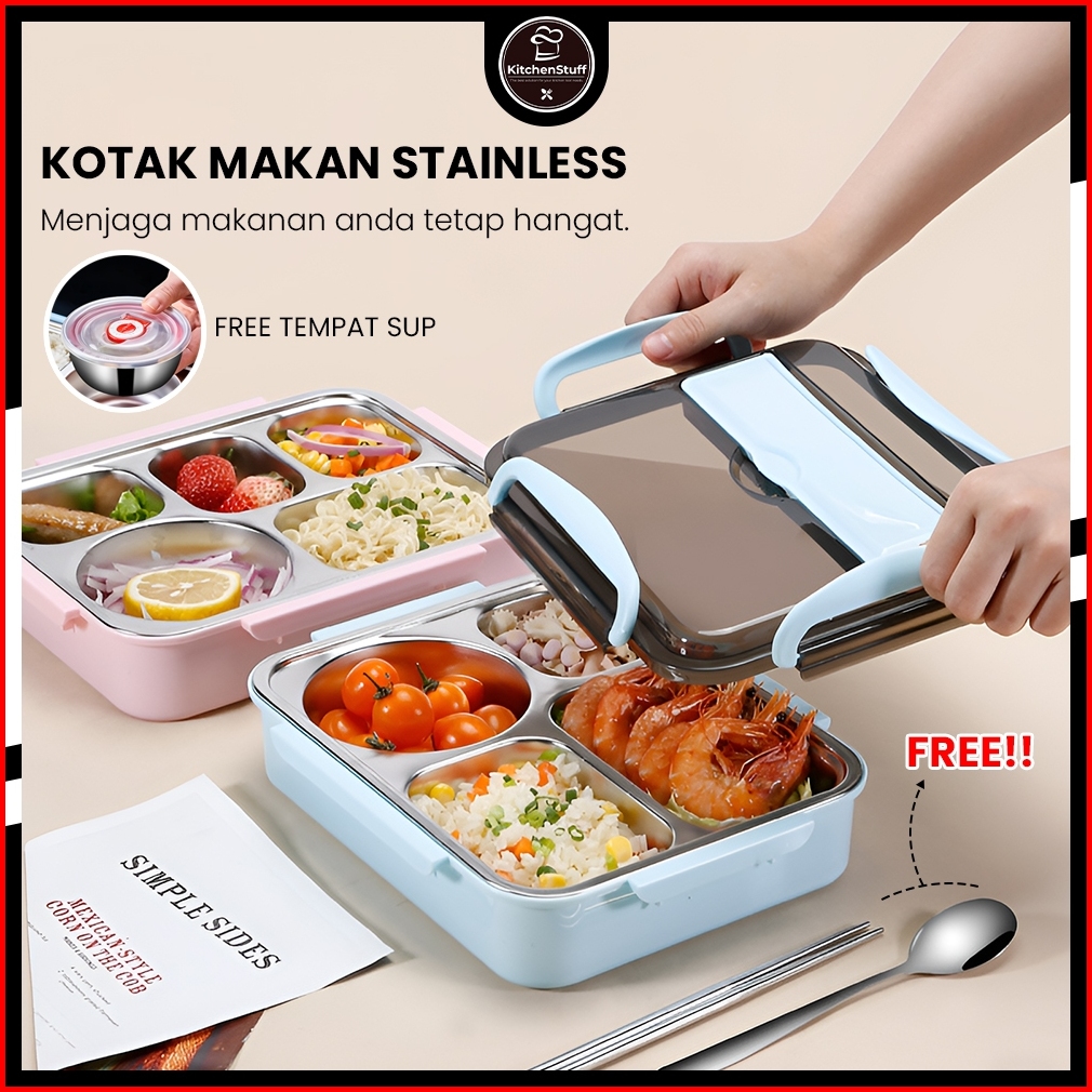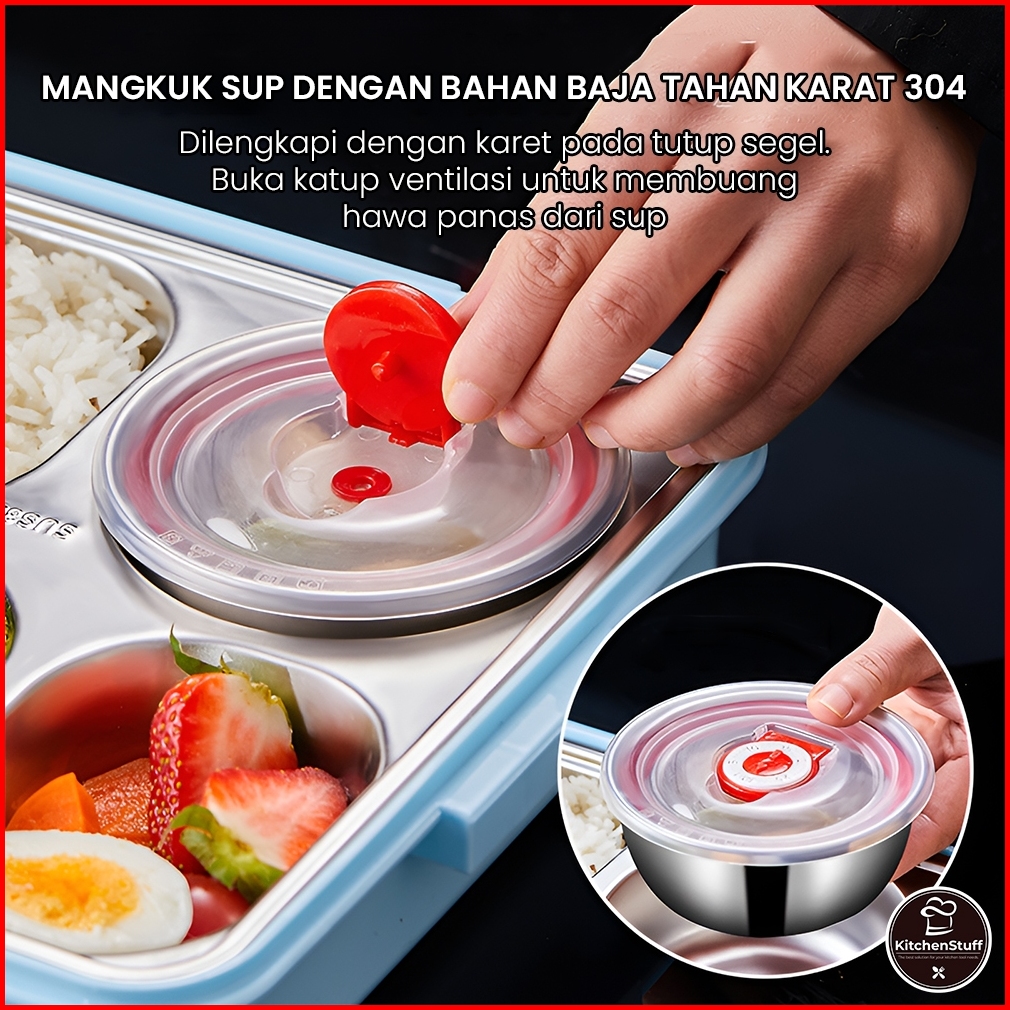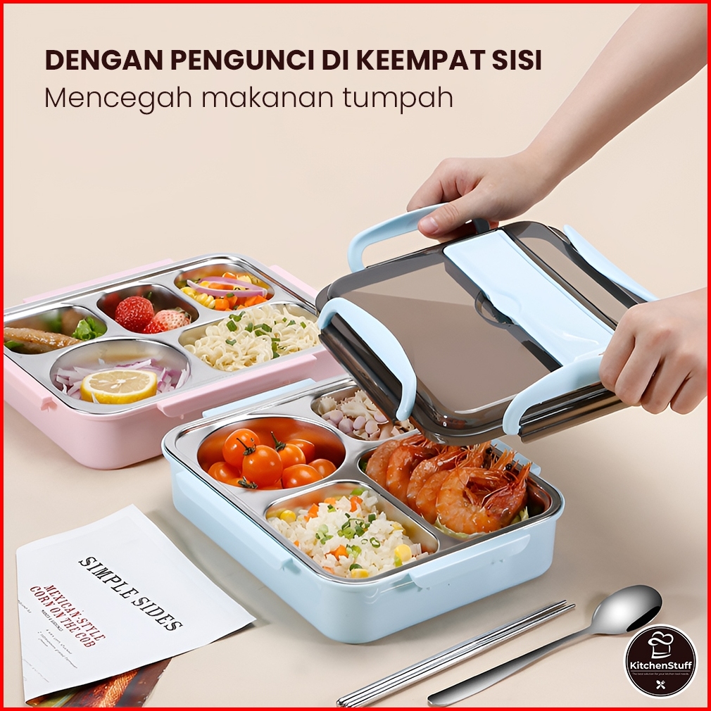 Lunch Box Premium 1000ml Sus 304 Food Grade - Anti Tumpah - Free Sendok Sumpit Kitchen Stuff