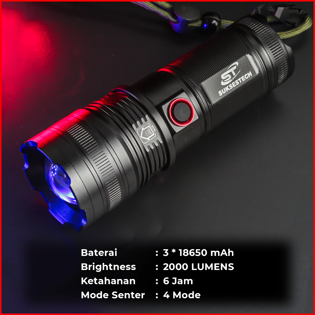 Suksestech Senter Zoom In Out Aluminium B70 2000 Lumens Flashlight Xa-b702