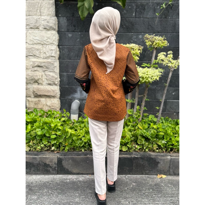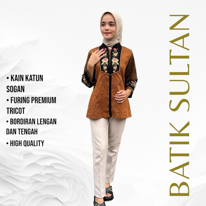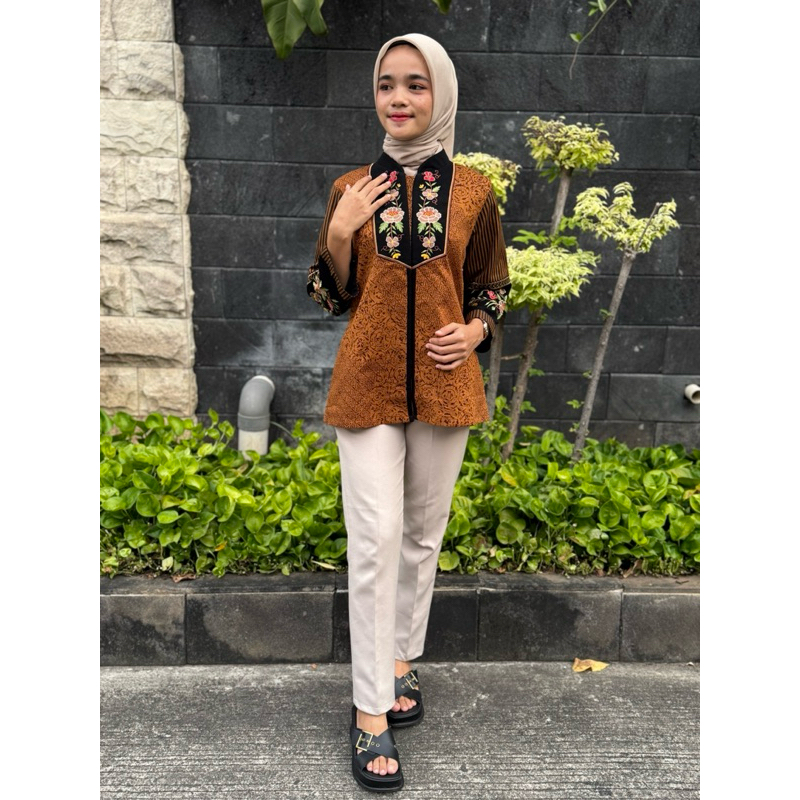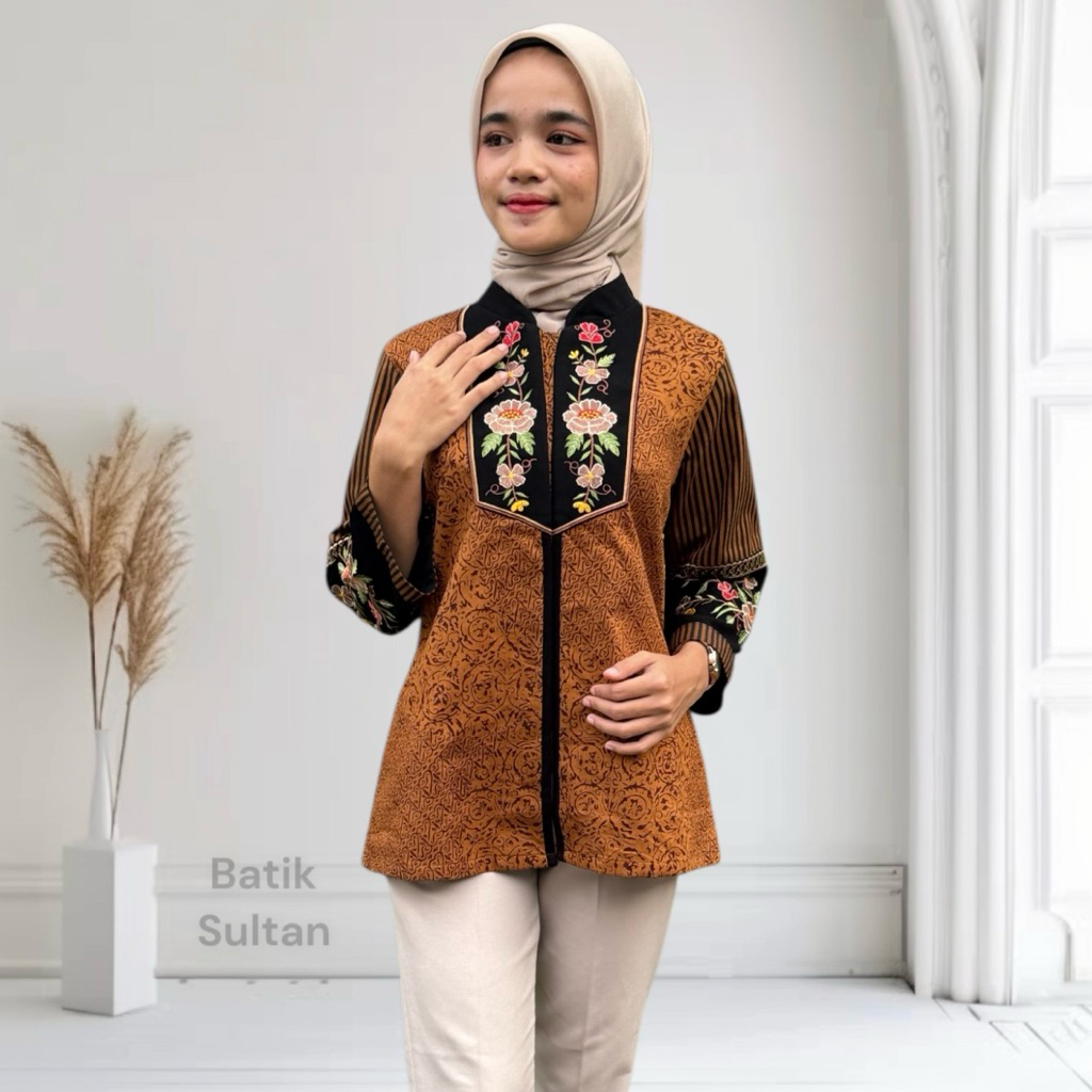 Atasan Batik Blouse Wanita Bordiran Premium Kain Katun Elegan l Batik Cewe Mewah Kantor Kondangan Terkini Kain Sogan
