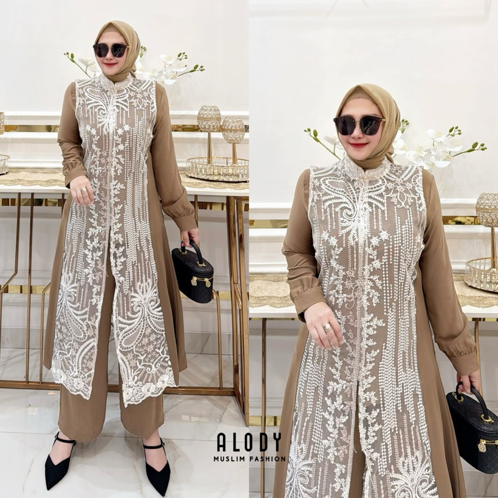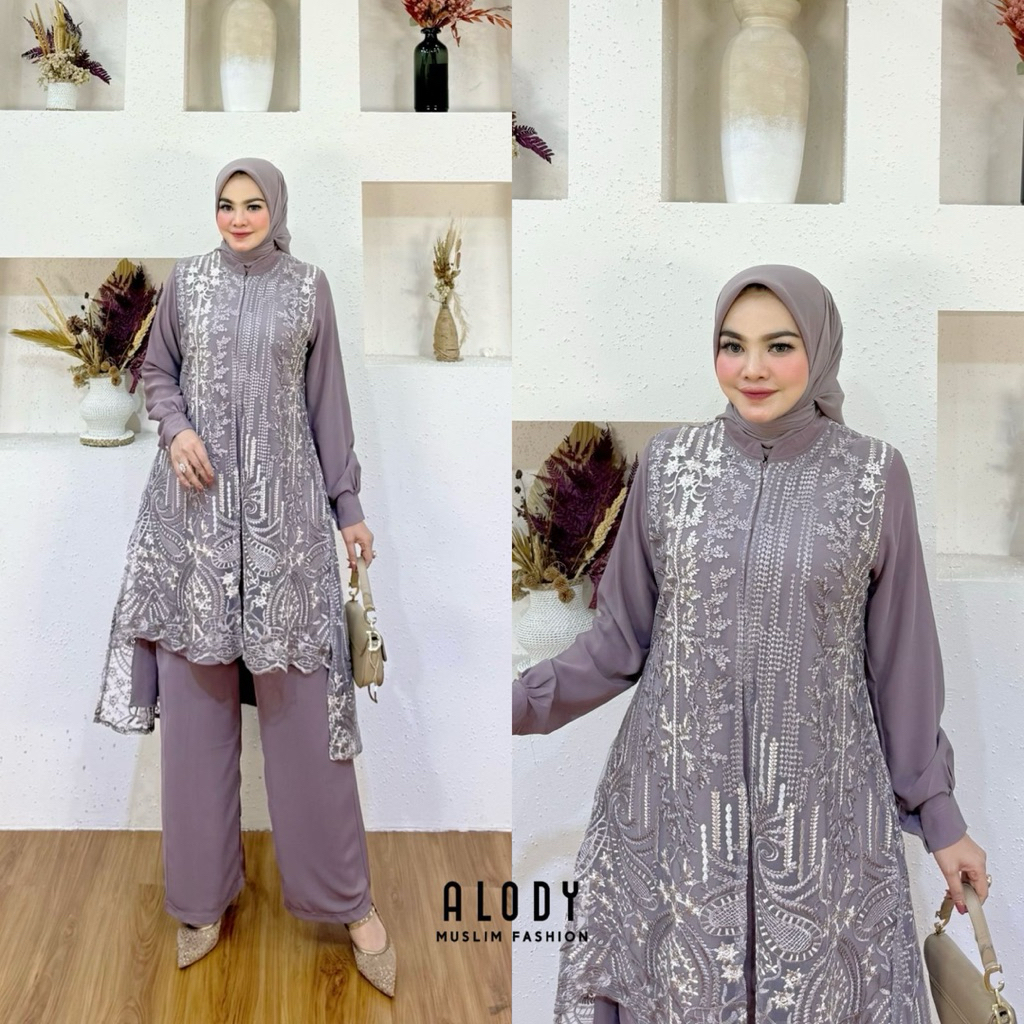 Zafira dan Belva set celana 2in1 by Alody setelan cantik terbaru mewah nyaman setelan wanita muslimah pesta lebaran pengajian s