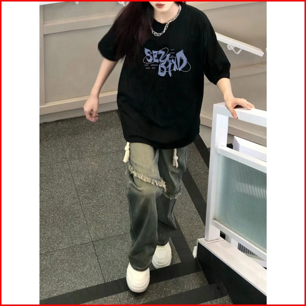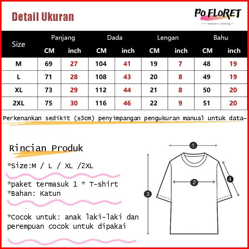 Po Floret T Shirt Oversize Lengan Pendek Kaos Letters Katun Murni Simple Style Wanita Top