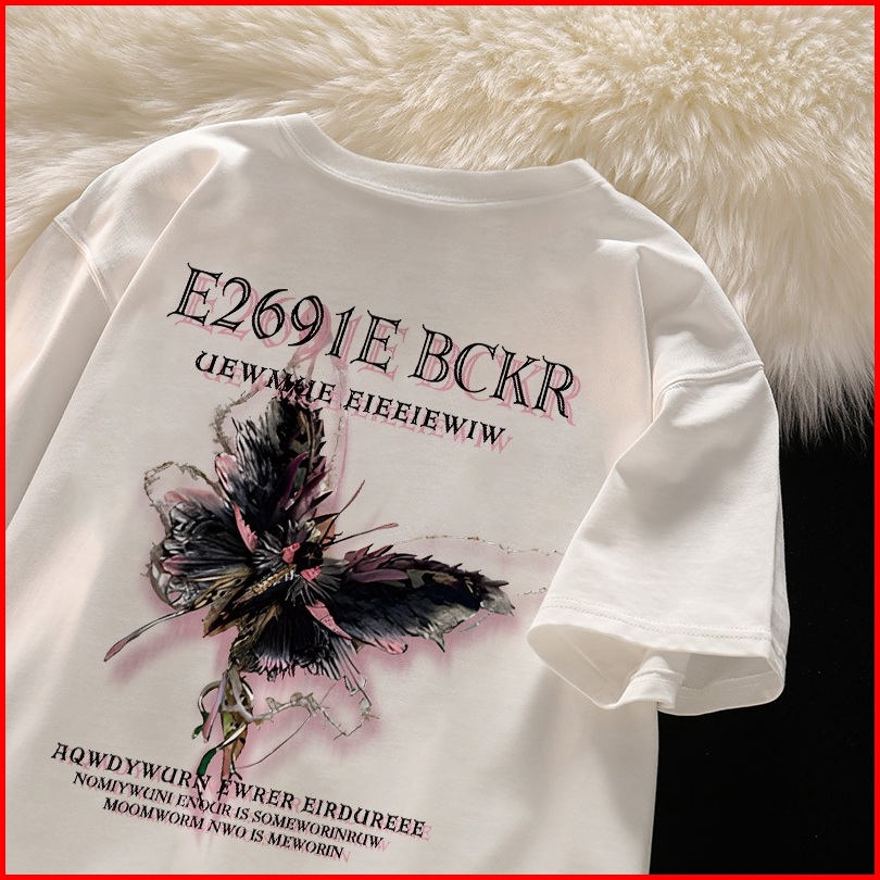 Po Floret Putih Kaos Oversize Lengan Pendek Pink Butterfly Korean Style Wanita Baju Atasan Wanita Terbaru