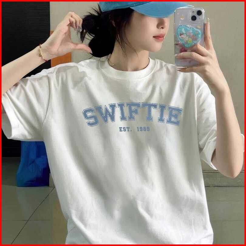 Jessica Korean Tshirt Lengan Pendek Oversize - Korean Style Swiftie Printed Tee Bahan 100 Cotton