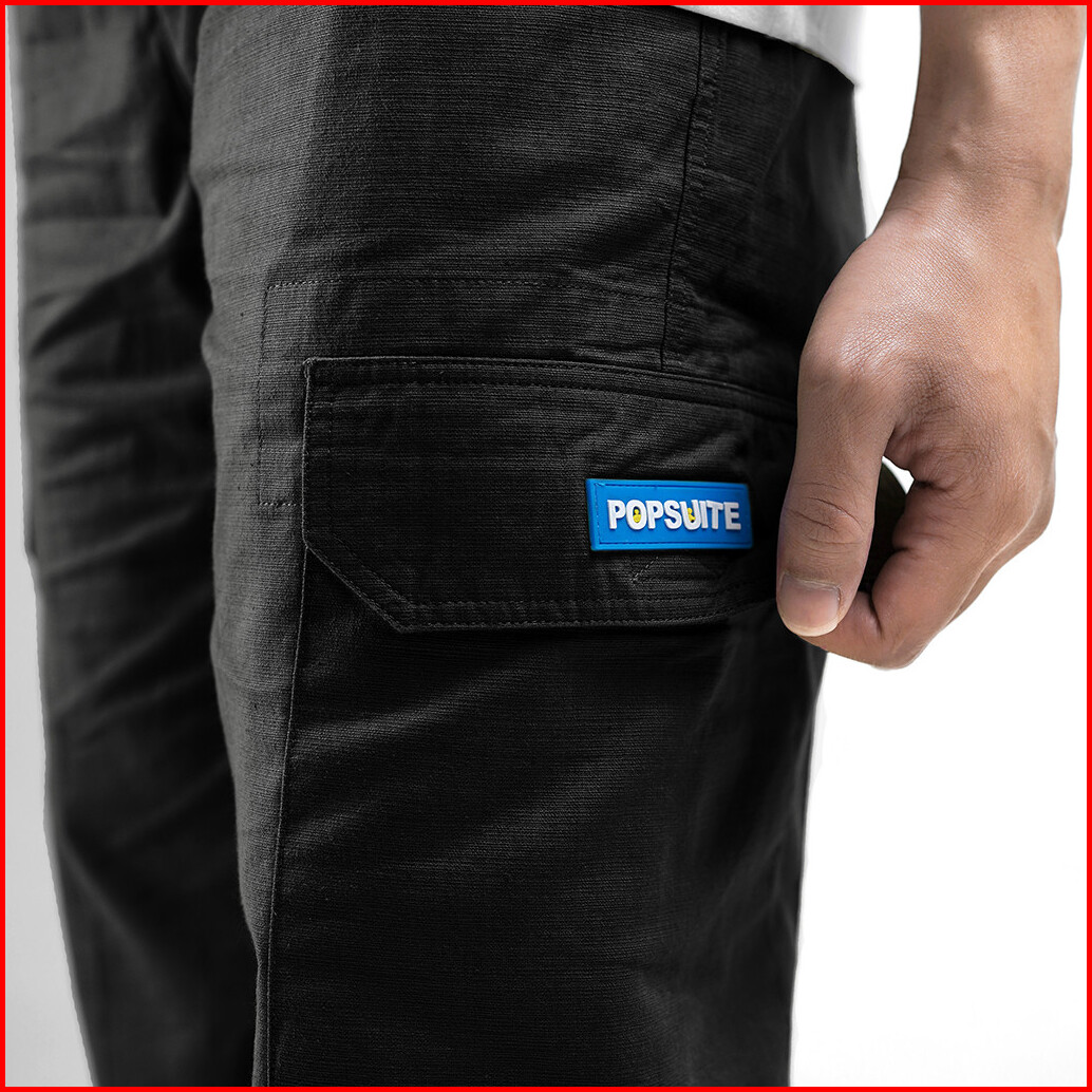 Popsuite Celana Panjang Pria Cotton Cargo Pants In Black