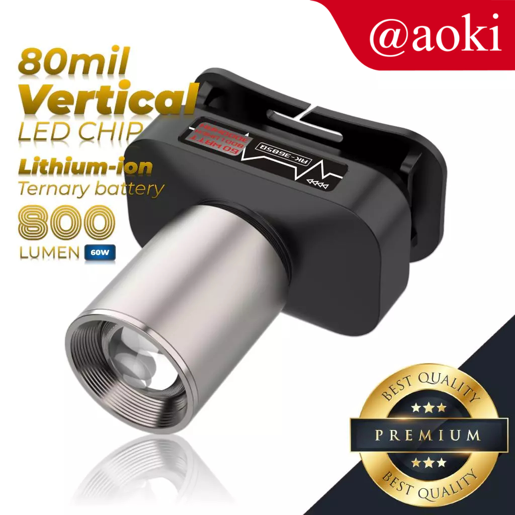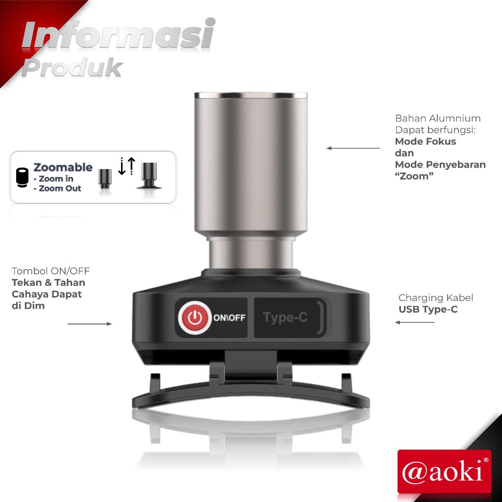 AOKI SENTER KEPALA CAHAYA MAKSIMAL PLUS RECHARGEPRO DENGAN USB-C, 60W FOKUS & PENYEBARAN ZOOM 800LUMEN 1000LUMEN
