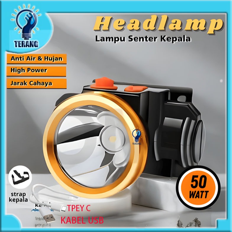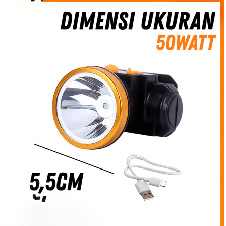 LAMPU SENTER KEPALA LED 50W ANTI AIR CAMPING SENTER CAMPING