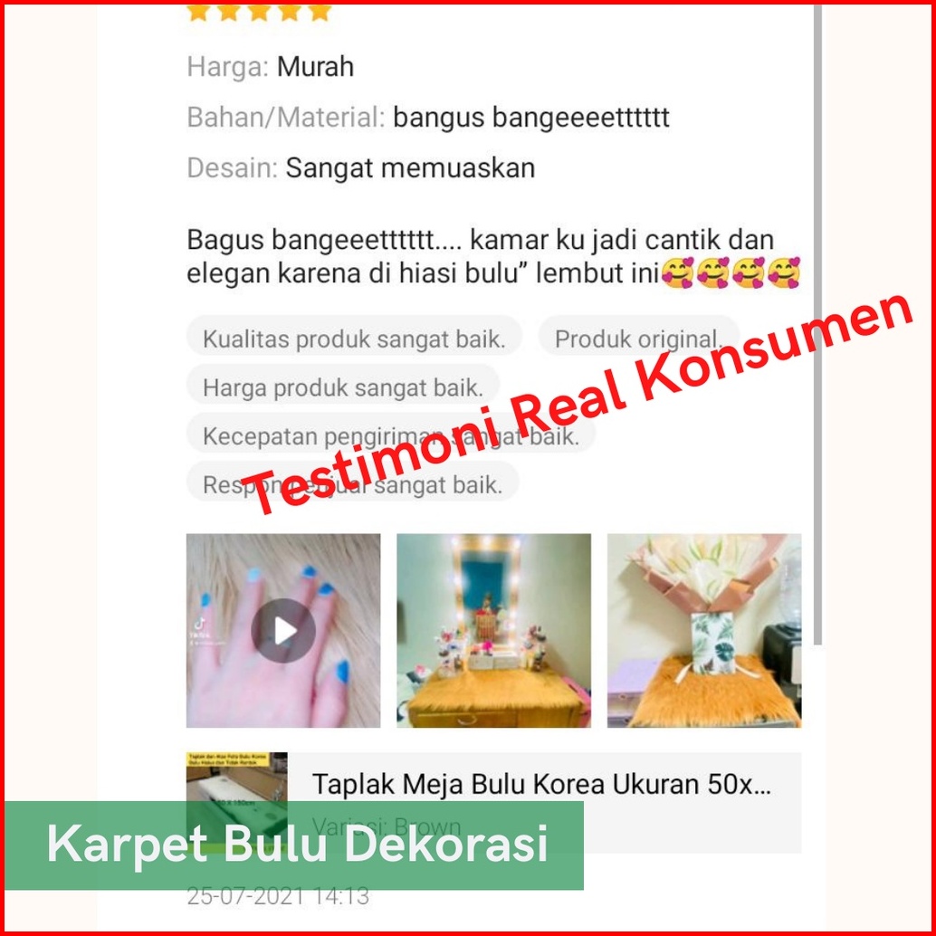 Taplak Meja Bulu Korea Ukuran 50x100cm Premium Halus Dan Bisa Dipake Alas Foto Produk Tebal 6 5 Cm