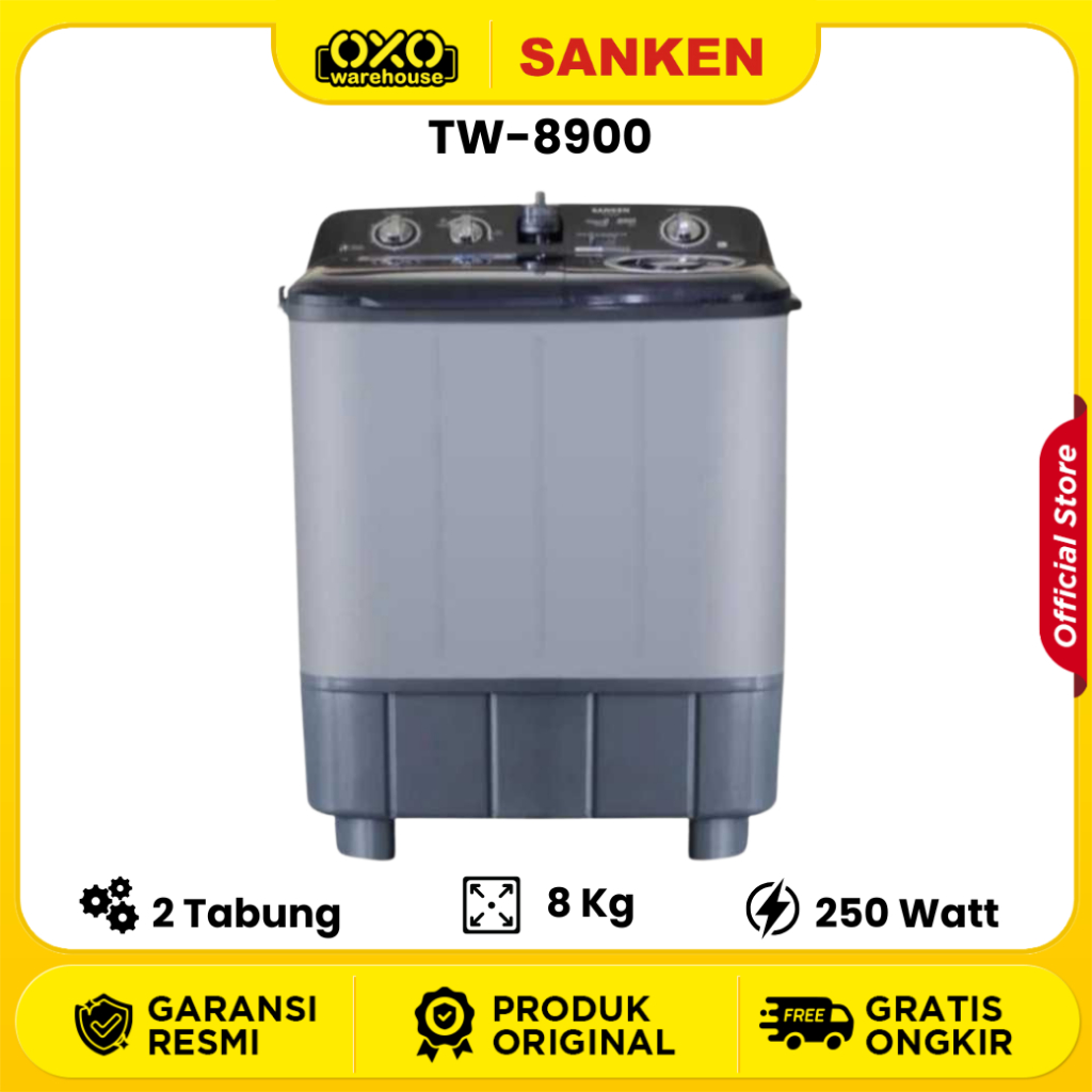 SANKEN MESIN CUCI TW-8900BK 2 TABUNG KAPASITAS 8KG X-TOR TEKNOLOGI LOW WATT RESM