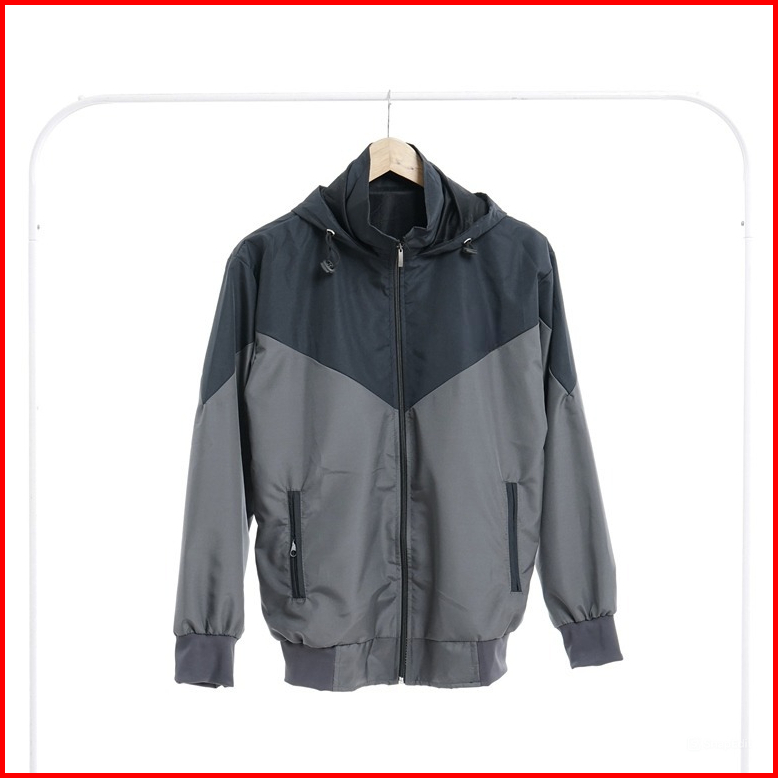 Jaket Parasut Kombinasi Hitam Abu Tua Nyaman Berkualitas