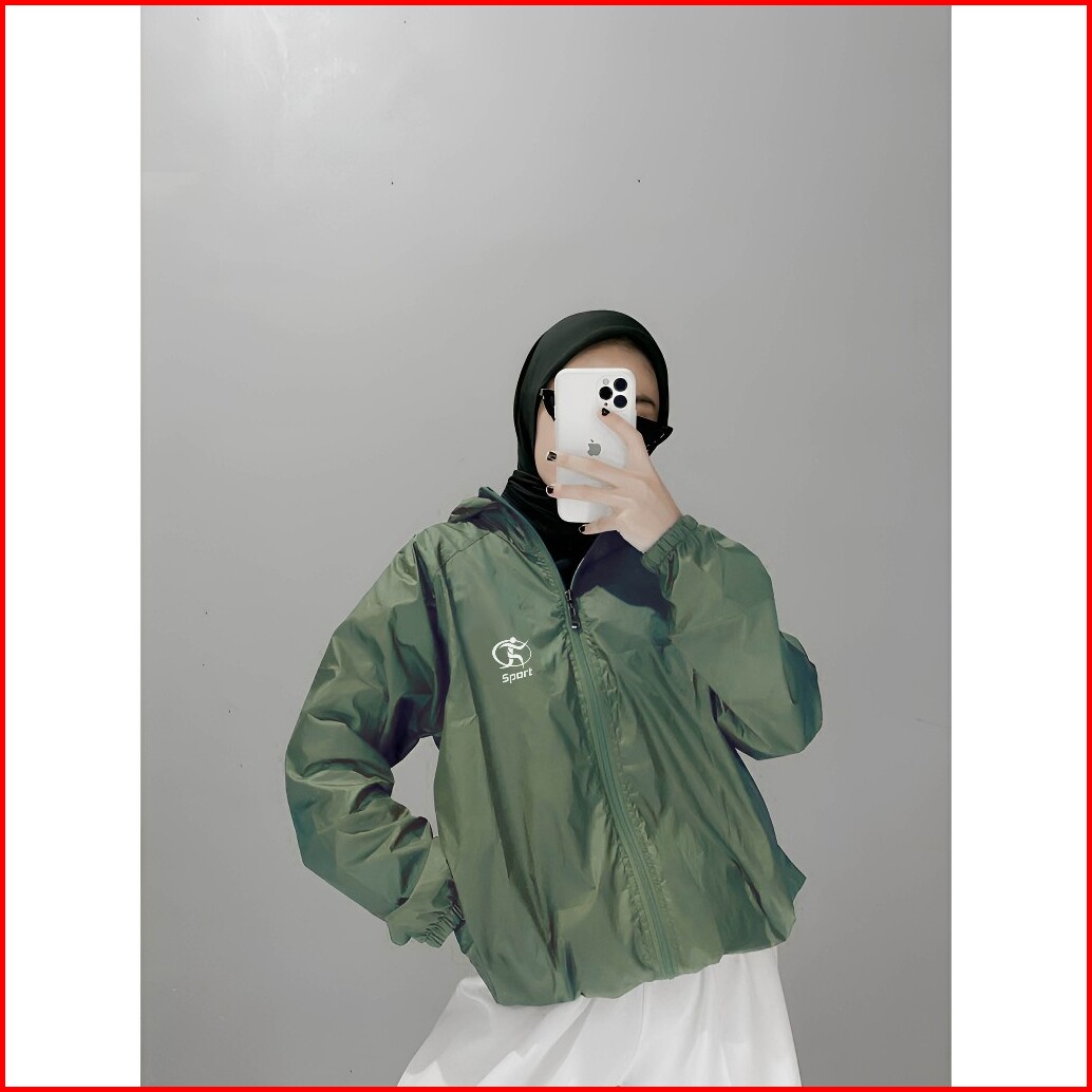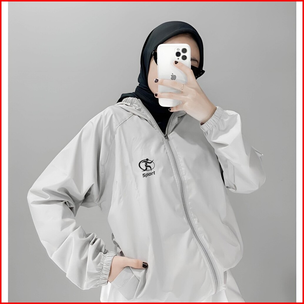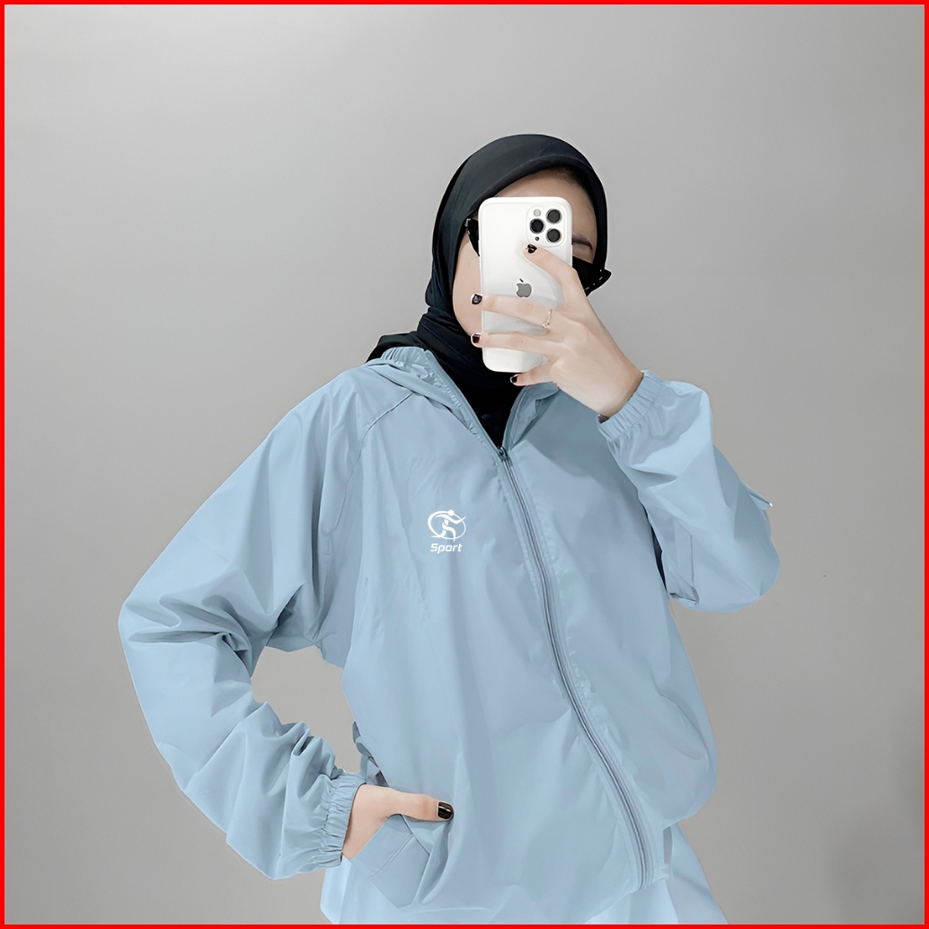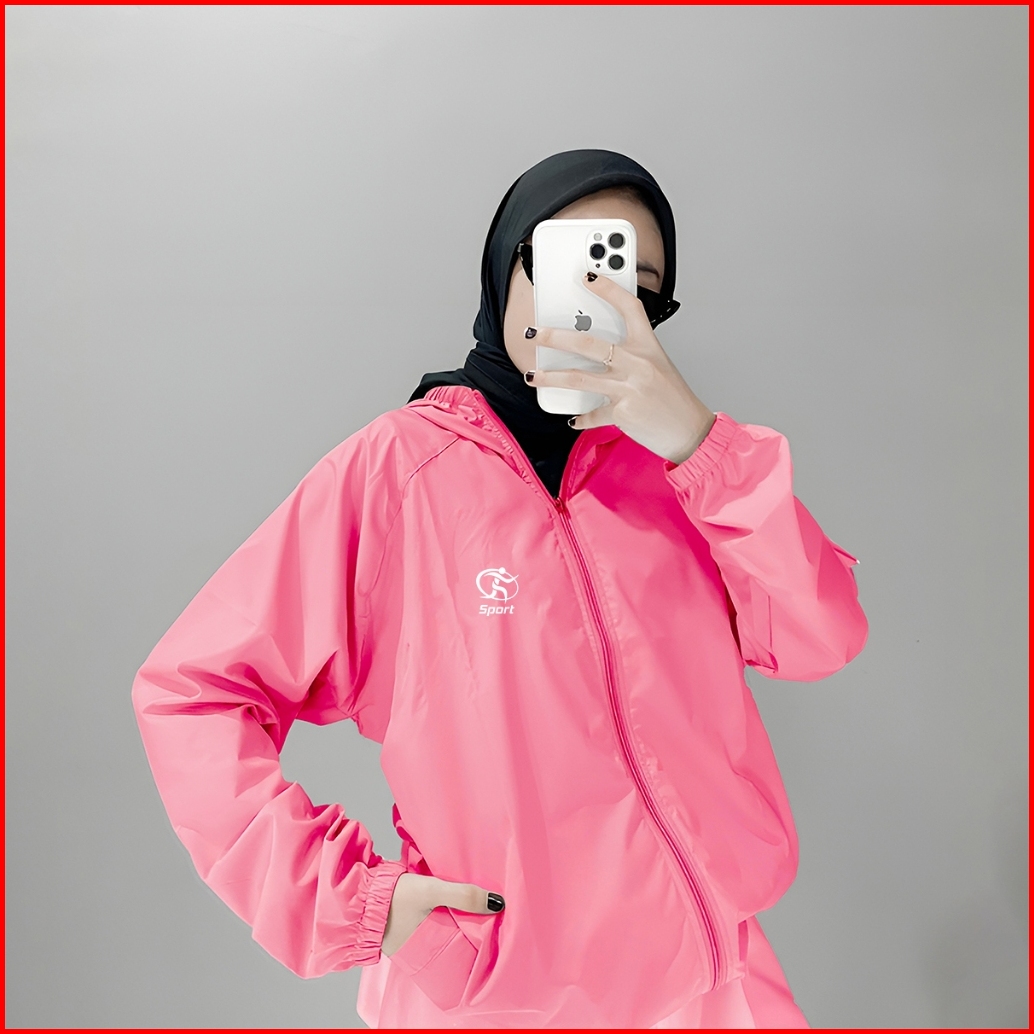 Jaket Olahraga Pria Wanita Running Gym Sepeda Zumba Anti Sinar Uv Bahan Parasut Premium