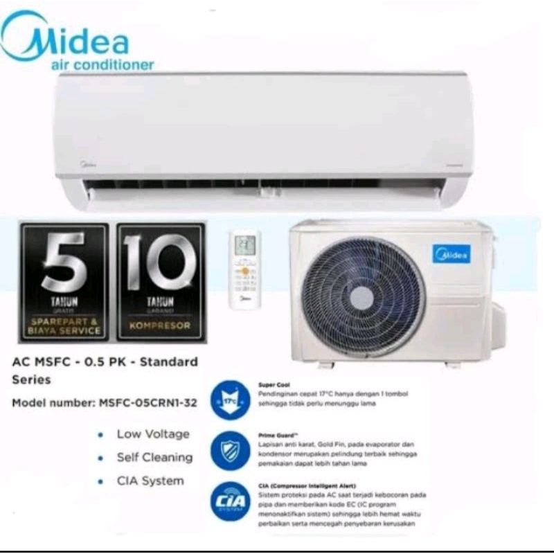 AC MIDEA MSFCE-05CRN2X 1/2PK NEW DUAL kuningan mengkilap FIN 05CRN2X LOWWATT + PASANG DEPOK