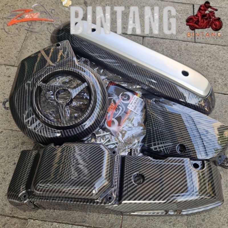 Paket Cover Carbon 3 Item Mio Sporty/Mio Smile Cover Kipas Tameng Knalpot Cvt Carbon Zoro Import
