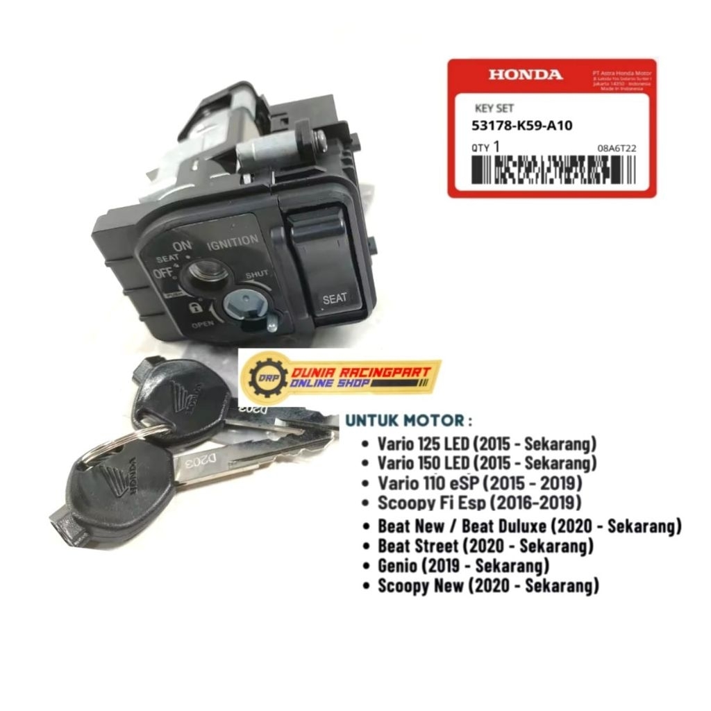 KUNCI KONTAK + TOMBOL JOK K59/K60 SCOOPY ( 2015-SEKARANG ) GENIO VARIO 125/150 LED,VARIO 110 FI K59