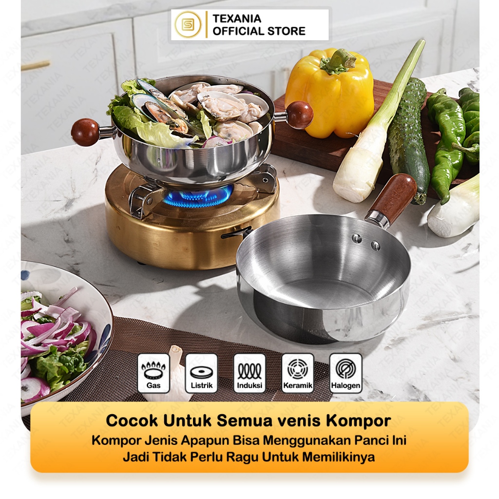 TEXANIA Set Panci Stainless Anti Lengket Diameter 16cm+FREE 1PCS TUTUP KACA