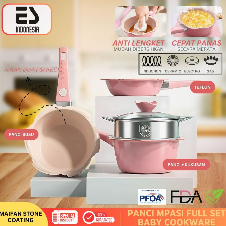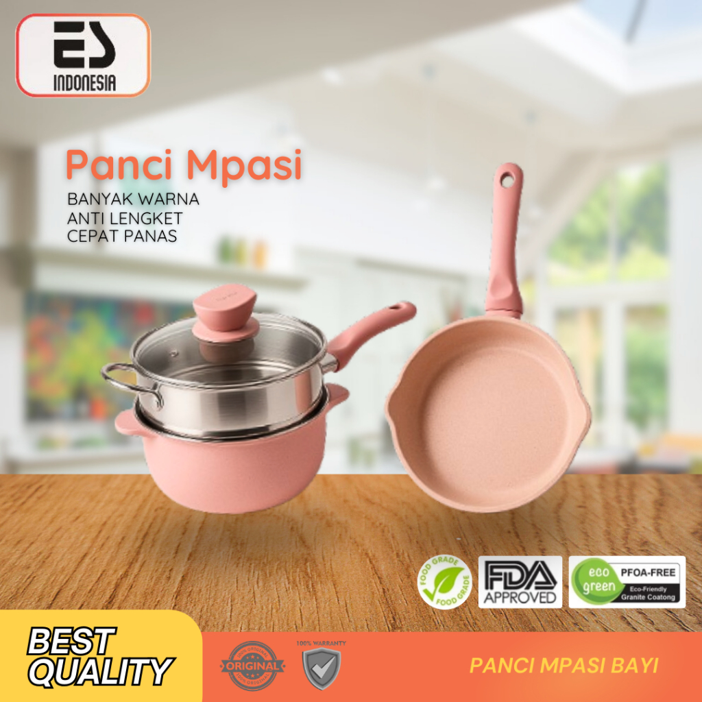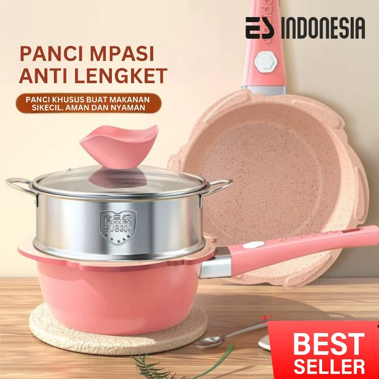 ESINDO Panci MPASI Full Set 16cm - Baby Cookware Peralatan Panci Bayi Granite Die Cast (Kuat) Anti Lengket