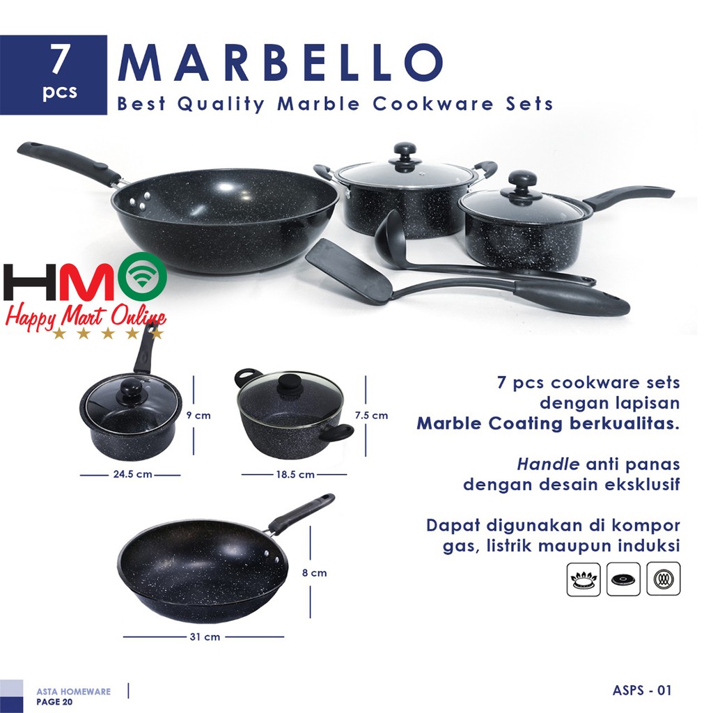 Asta Marbello Wajan Panci Marbel Set Anti Lengket Marble Cookware Set 7 Pcs Asta Marbello