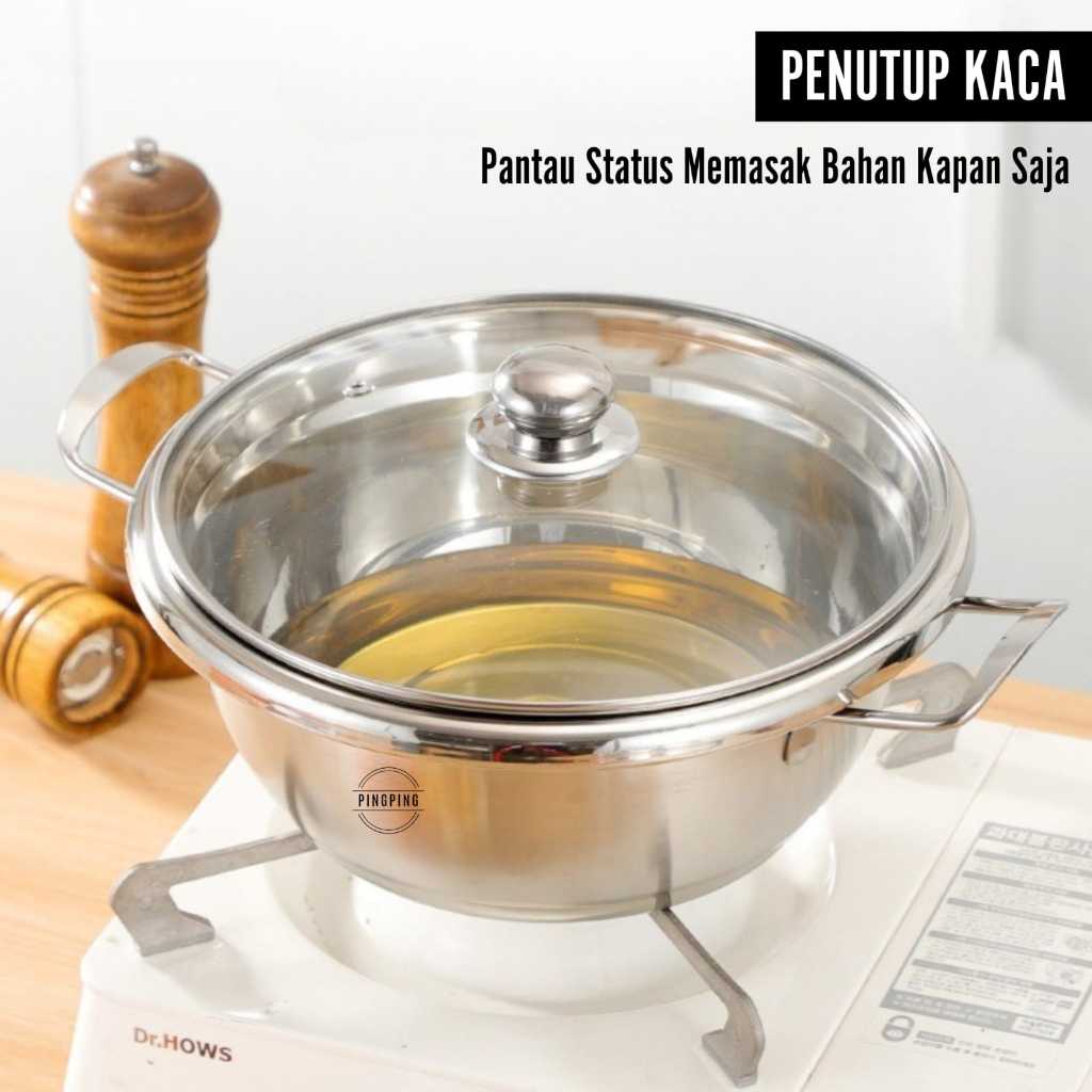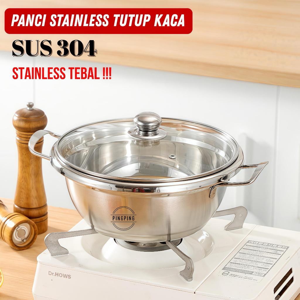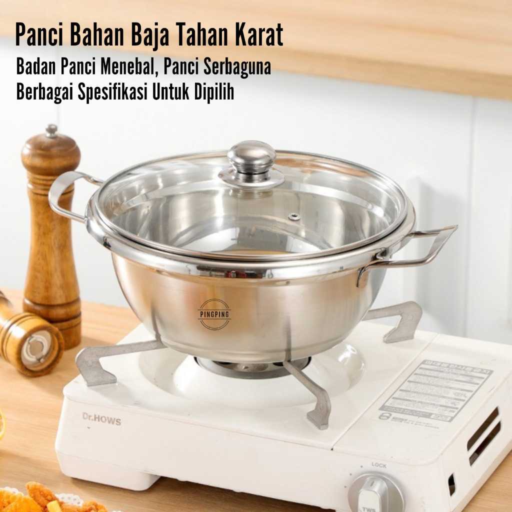 Panci Sup 304 Stainless Steel Anti Karat Tebal Serbaguna dengan Tutup Kaca - Cocok untuk Kompor Gas & Induksi