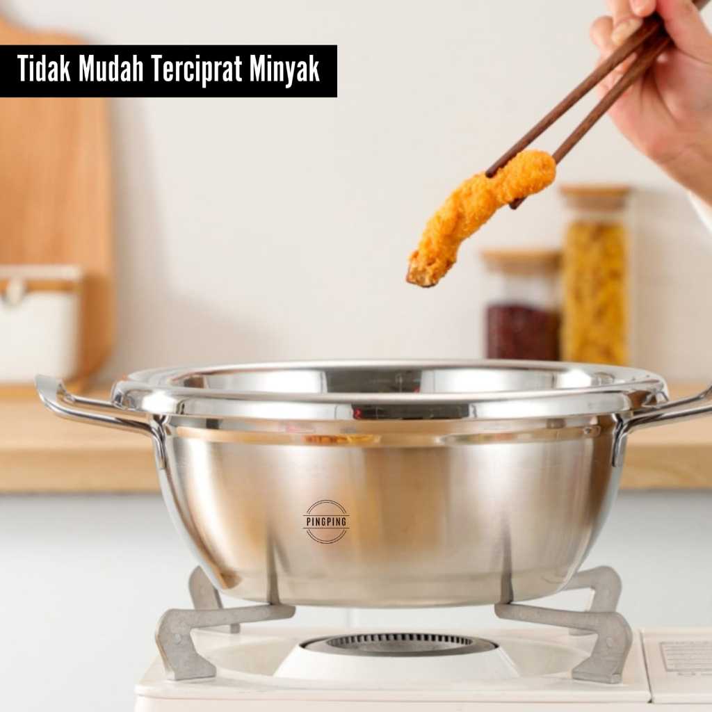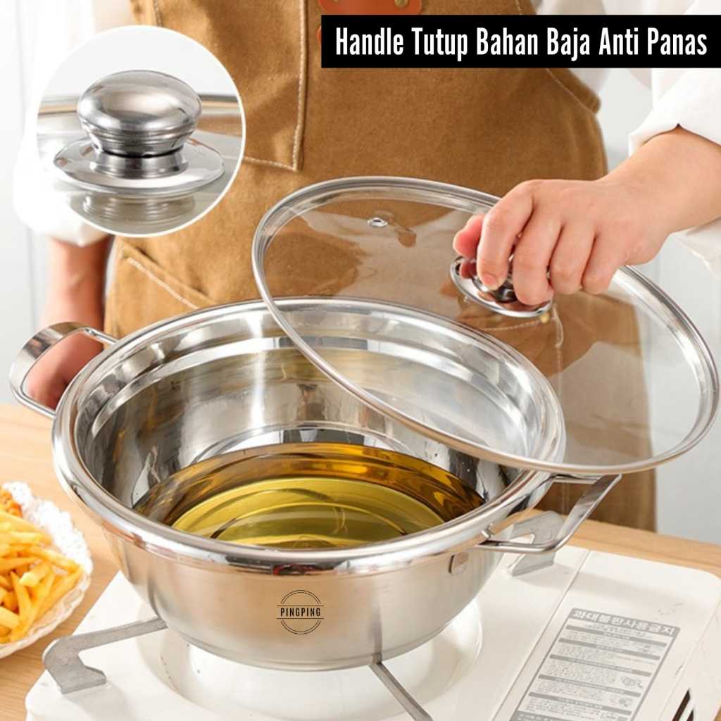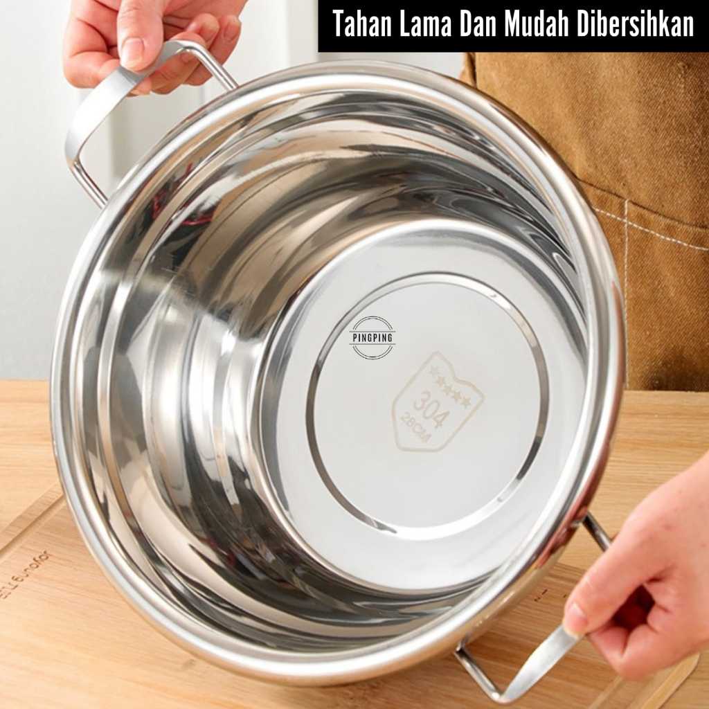 Panci Sup 304 Stainless Steel Anti Karat Tebal Serbaguna dengan Tutup Kaca - Cocok untuk Kompor Gas & Induksi
