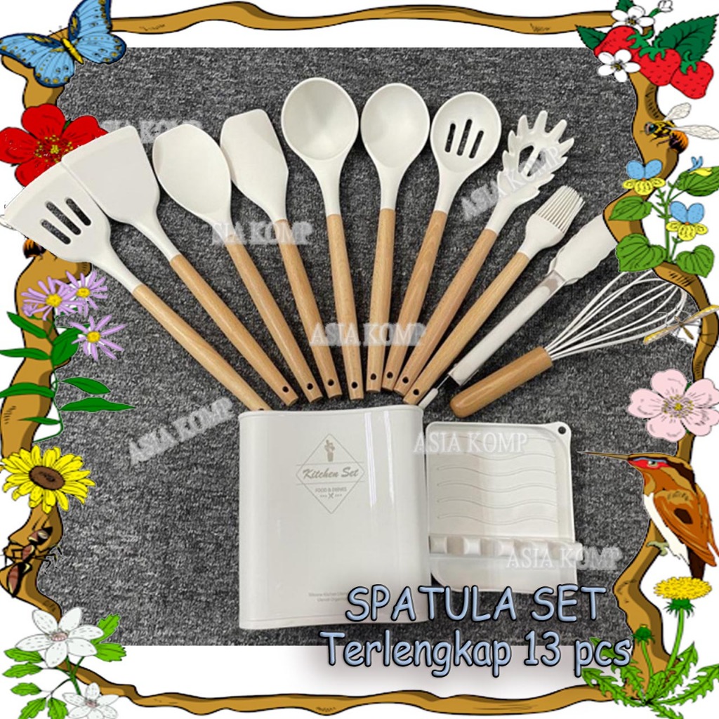 Silicone Utensil Set 13 Pcs plus Tatakan Spatula dan Bucket Peralatan Masak Terlengkap
