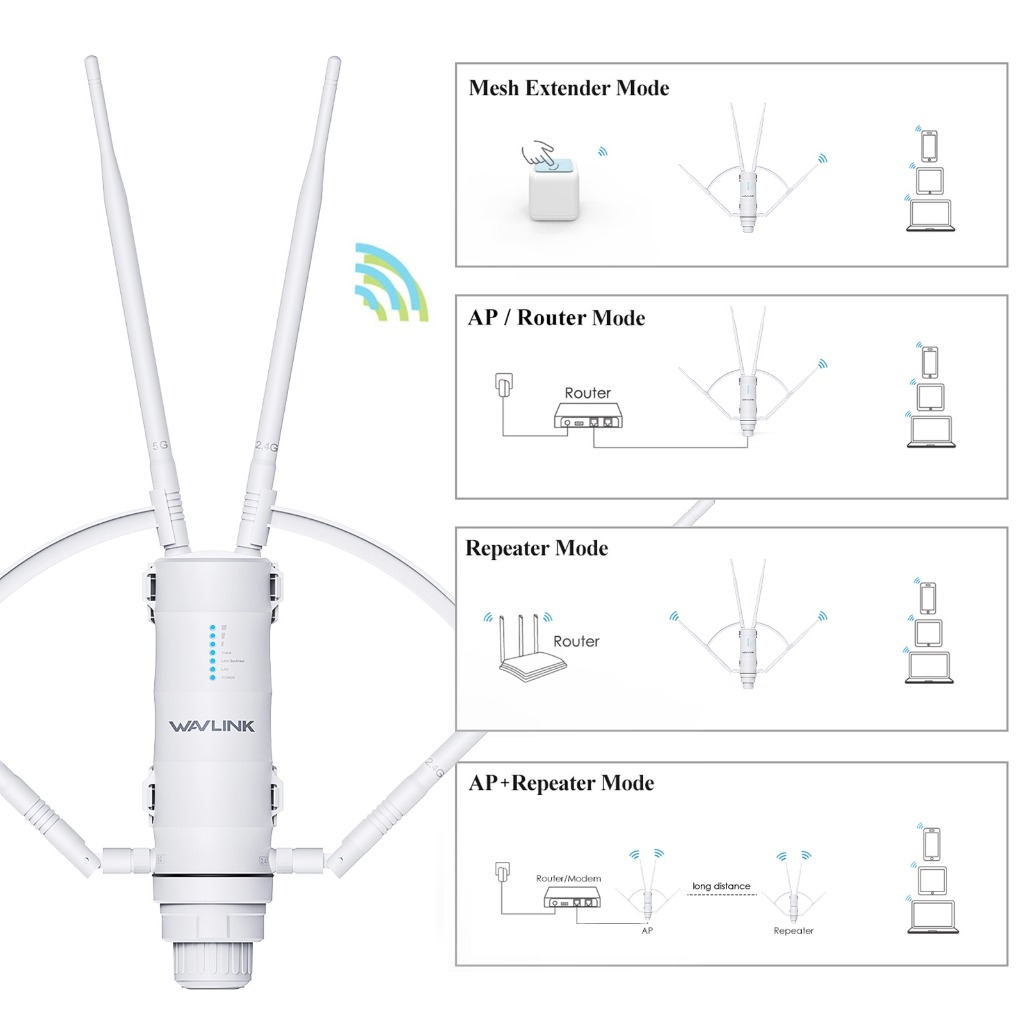 Wavlink Ac1200 Titik Akses Luar Ruangan Router Nirkabel Router Wifi Dual Band 4 Antena Terarah Router Wifi Tahan Cuaca E