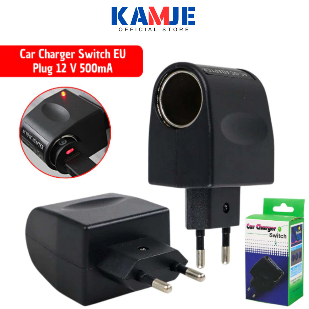 KAMJE Car Charger Switch Adaptor Adapter Inverter AC to DC EU Plug 12V 500mA KMJ7304