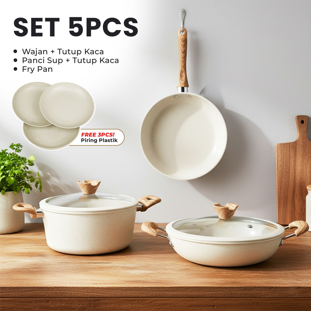 (FREE PIRING)Panci Marble Set 6 pcs Anti Lengket - Panci Wajan Serbaguna Estetik untuk Semua Jenis Kompor