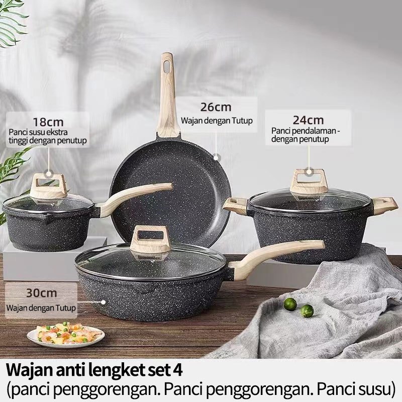 Antilengket Peralatan Masak 7PCS Peralatan Dapur Hitam Wajan Granite Jerman Set Panci Dan Wajan Paket Keluarga Set