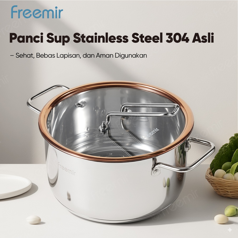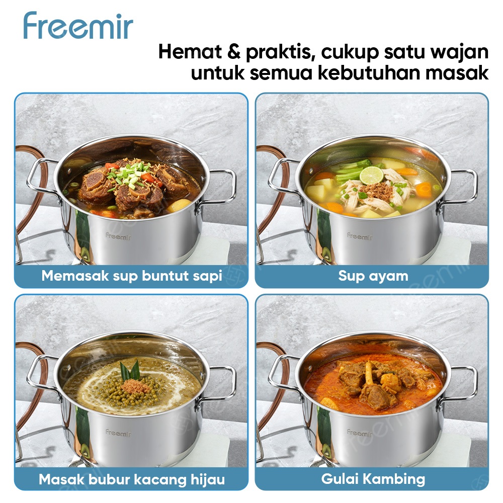 Special freemir Set api - panci sup 24cm304 dengan tutup Cocok untuk memasak sup dan makanan pendamping Panci dapur anti lengket