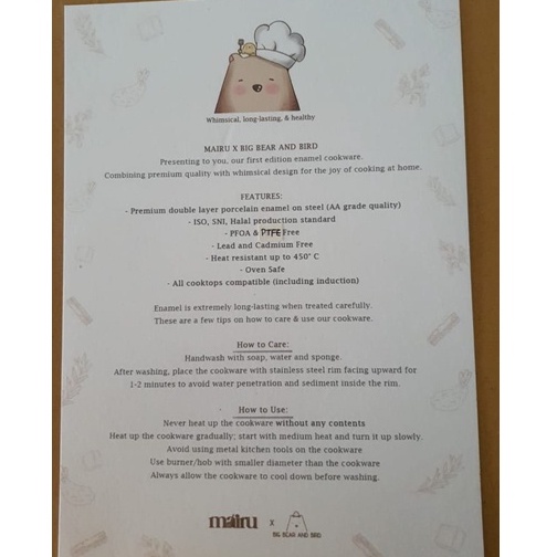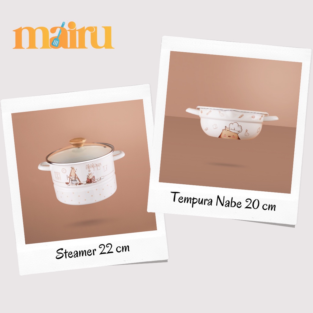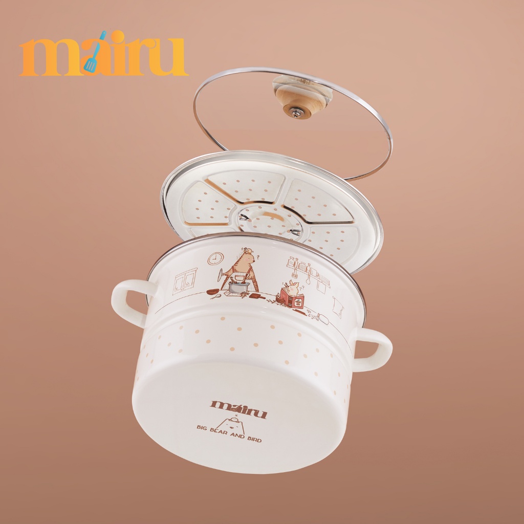 MAIRU x BIG BEAR & BIRD Panci Masak Steamer Dandang Enamel 22 cm