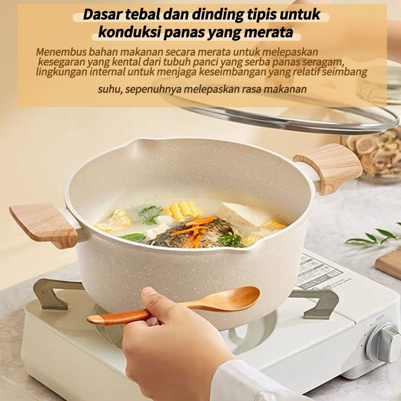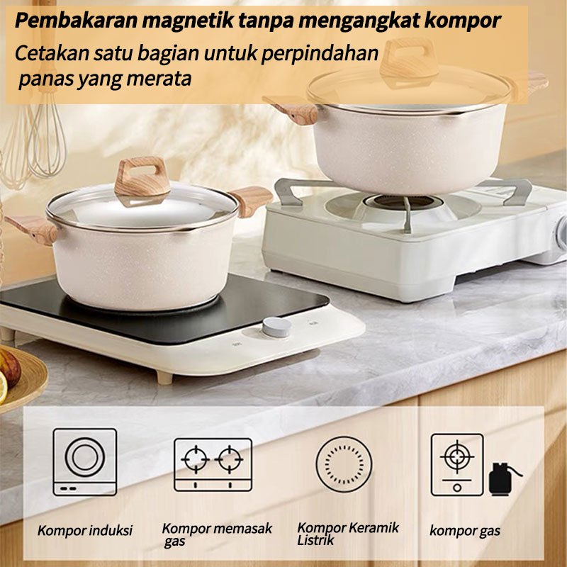 Panci Set 4 IN 1 Anti Lengket Panci Isi 3 Tutup Kaca Panci Set Pot Cookware Set Anti Lengket
