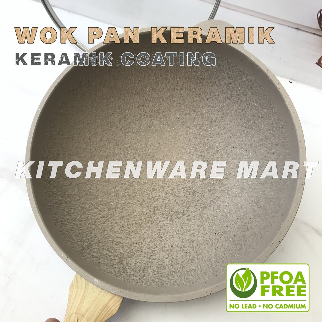 Wokpan Keramik 28 cm Tutup Kaca Wok Ceramic PFOA FREE - Wajan Keramik Panci wajan Penggorengan Fry