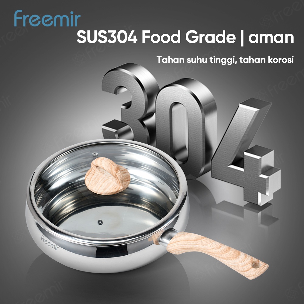 freemir Bundle Panci Gemoy Ceper Stainless SUS 304 + Kukusan 24cm Gagang Kayu Tutup Kaca Serbaguna