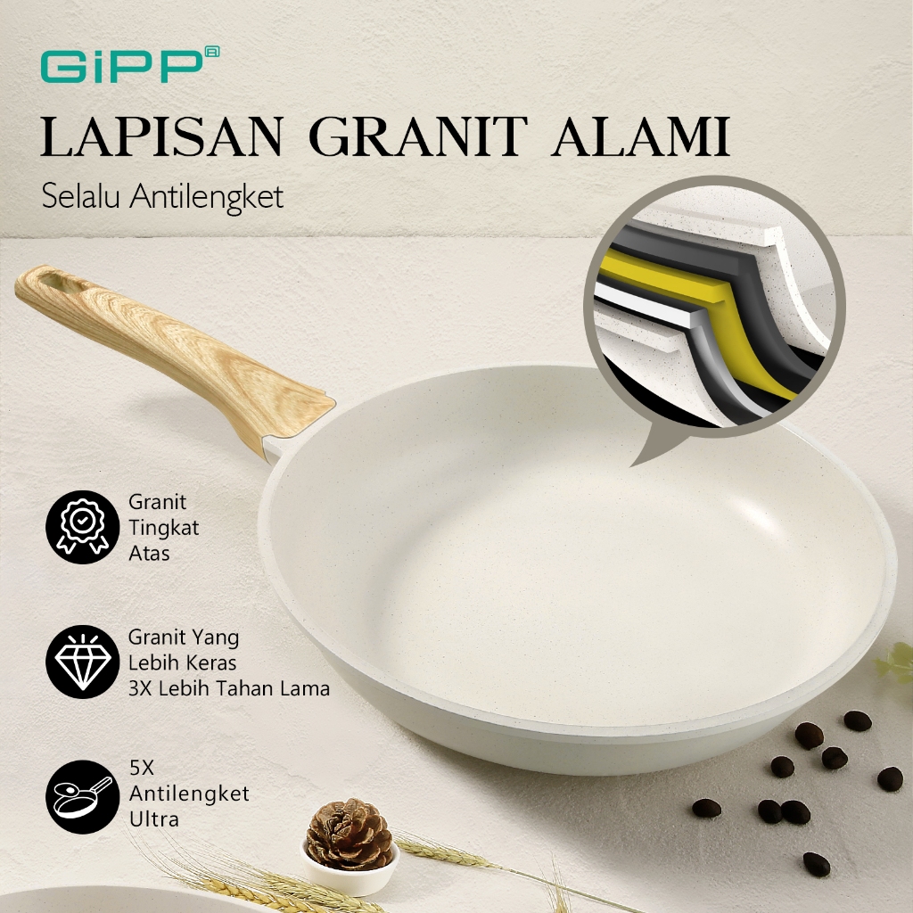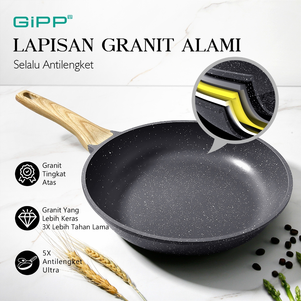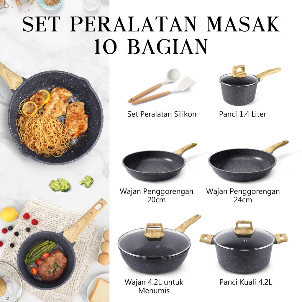 GiPP Peralatan Masak Anti Lengket Set Granit 10Pcs (5pan+3tutup+2alat) Cocok Untuk Semua Kompor