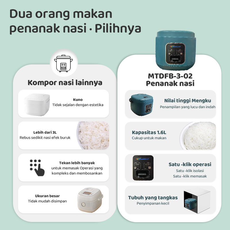 MAIMEITE Rice Cooker 1.6 Liter Magic com 300 Watt Tetap Hangat Cocok untuk 1-4 orang