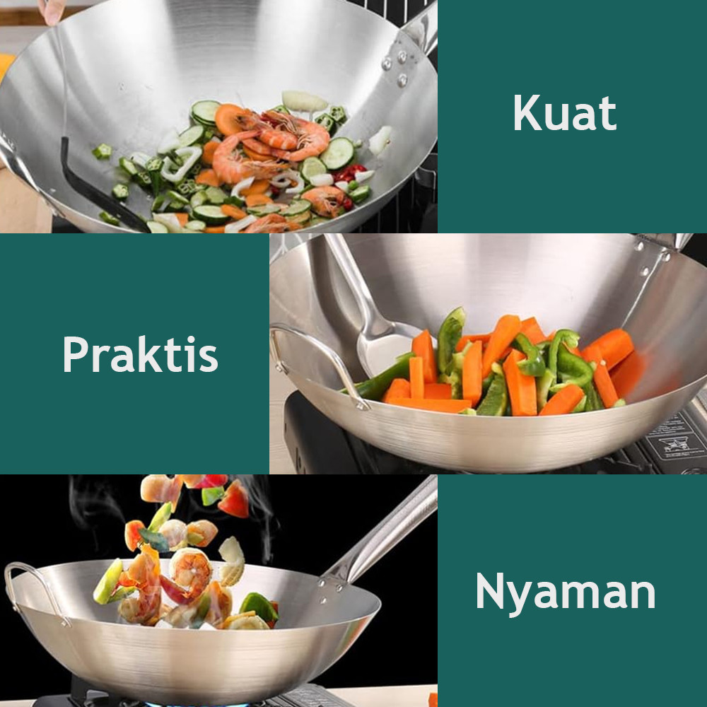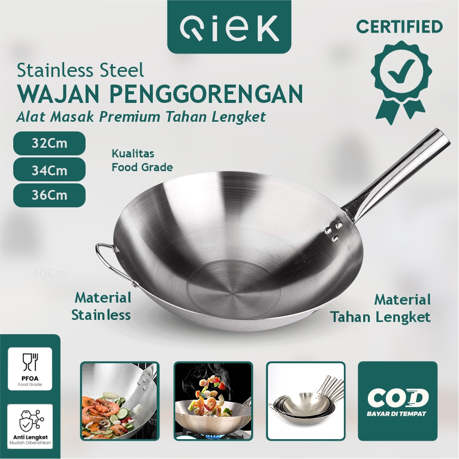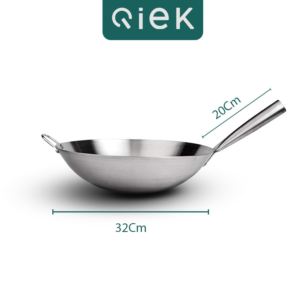 Qiek Wok Stainless Steel Kuali Wajan Penggorengan Anti Lengket 32cm - 36cm