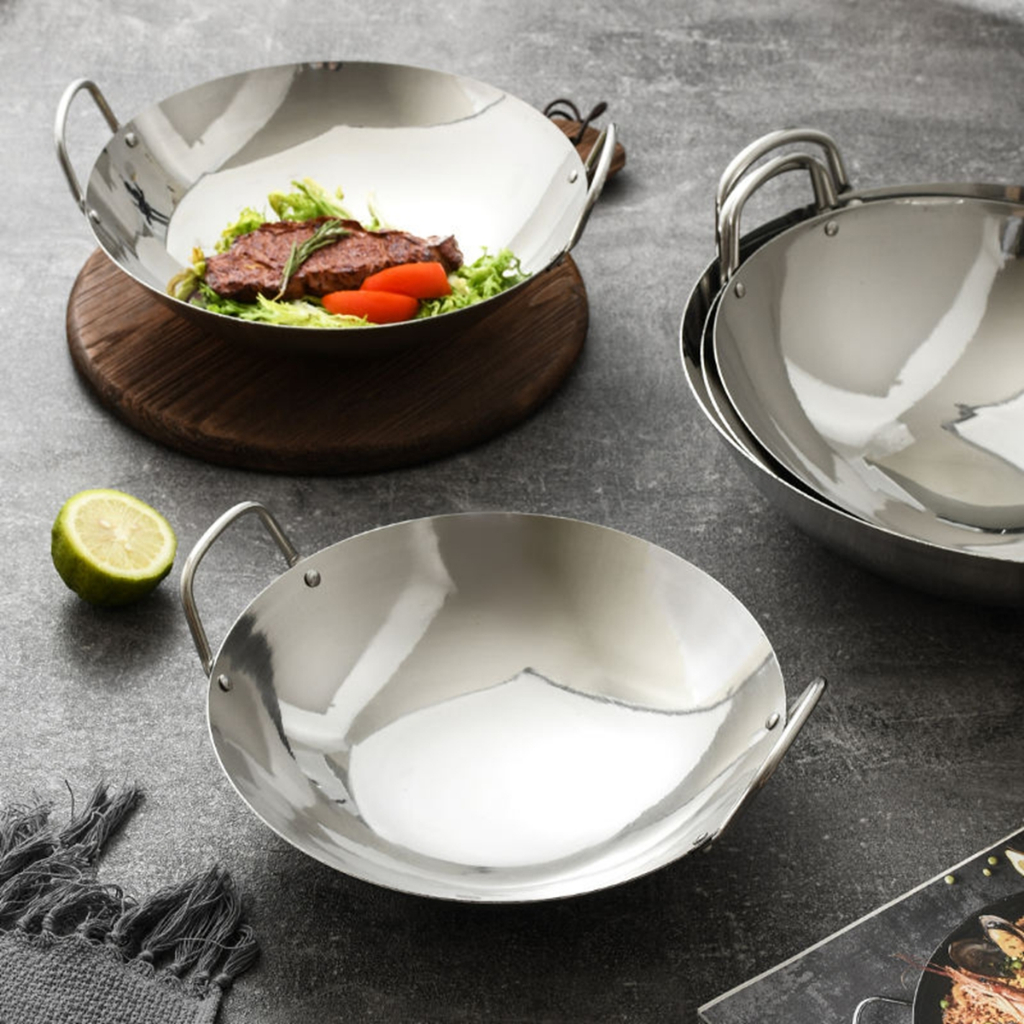 KWE Wajan Kuali Mini Stainless Anti lengket uk 28cm 26cm 24cm 22cm Wajan Stainless Tebal Kuali Premium Wajan Mini Dengan Stainless Steel