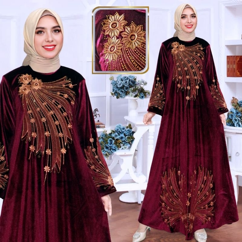 [Mall] Abaya Turkey Bludru Premium Motif Bunga Mekar Asli Bordiran Mewah Cantik Pesta Elegan