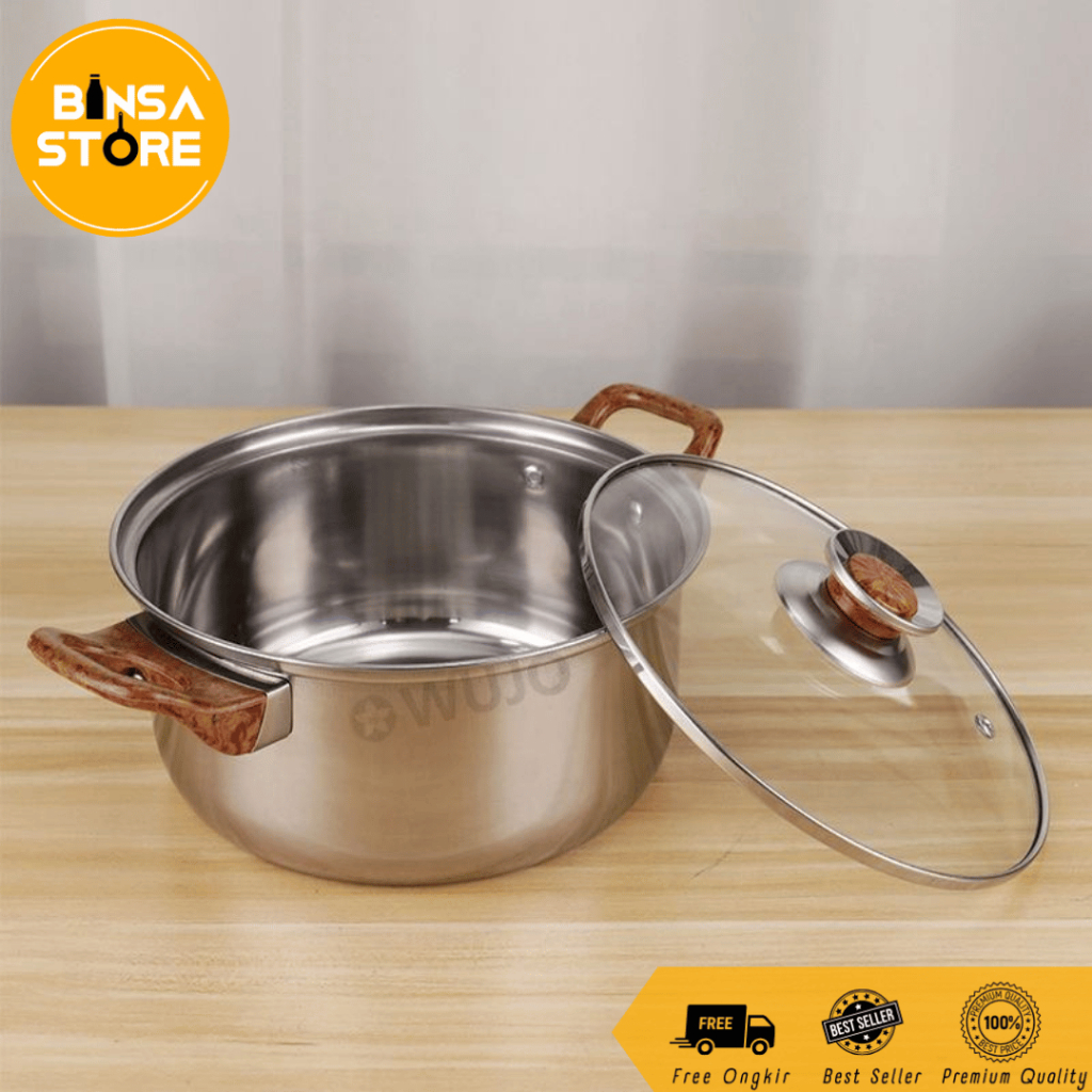 Stainless Cookware Set Isi 5 Macam Peralatan Masak Lengkap Pegangan Kayu Kuali Frying Pan - 270A