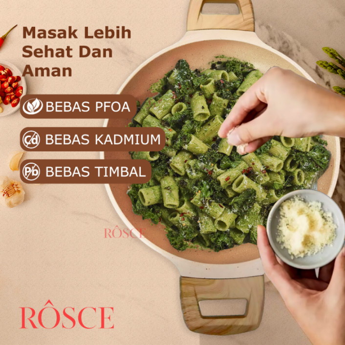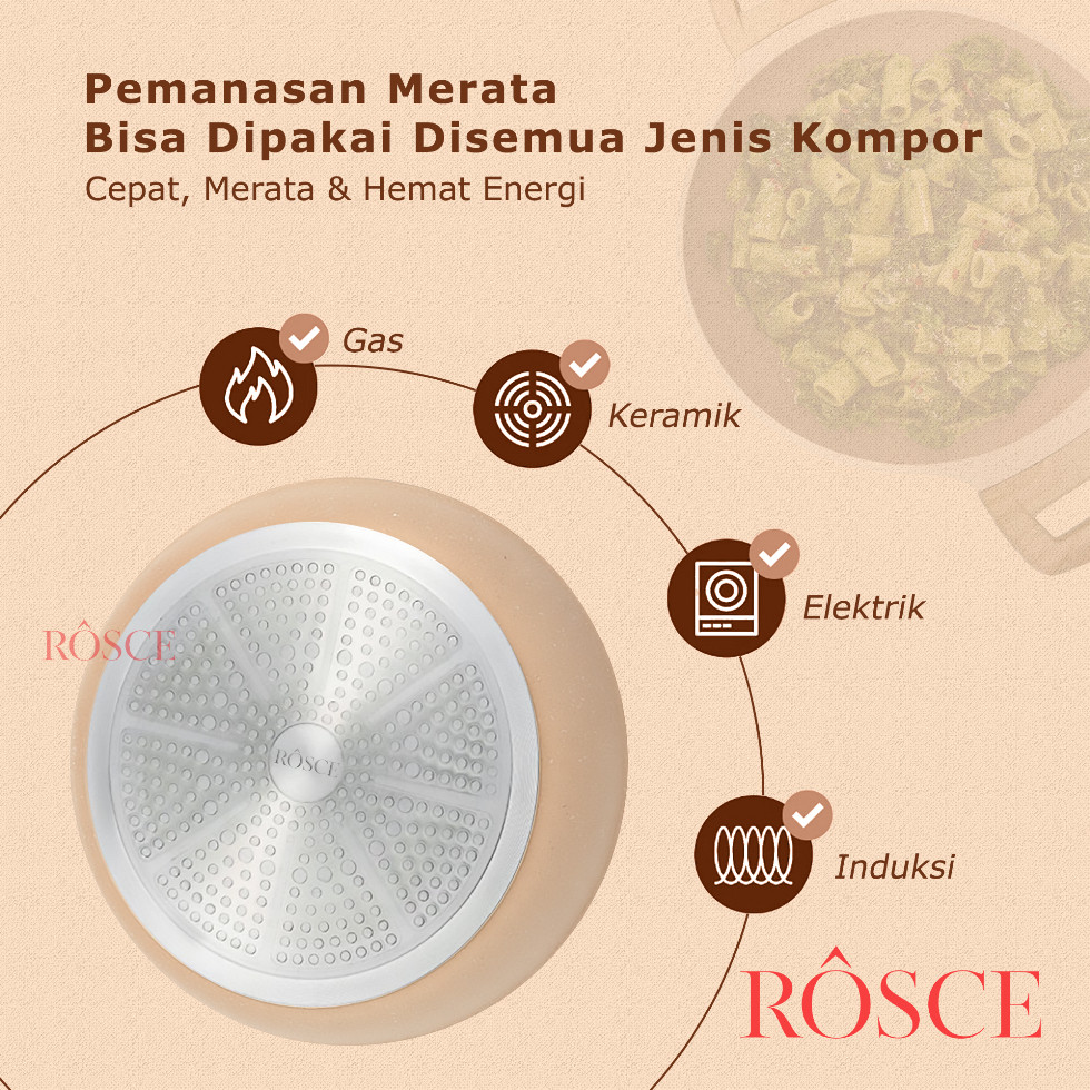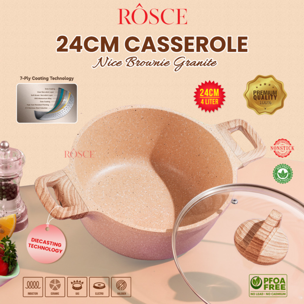 ROSCE PANCI CASSEROLE 24cm DC stock pot tutup kaca steamer kukusan stainless WAJAN SOUP ANTI LENGKET GRANIT MARBLE SOFT BROWN high quality
