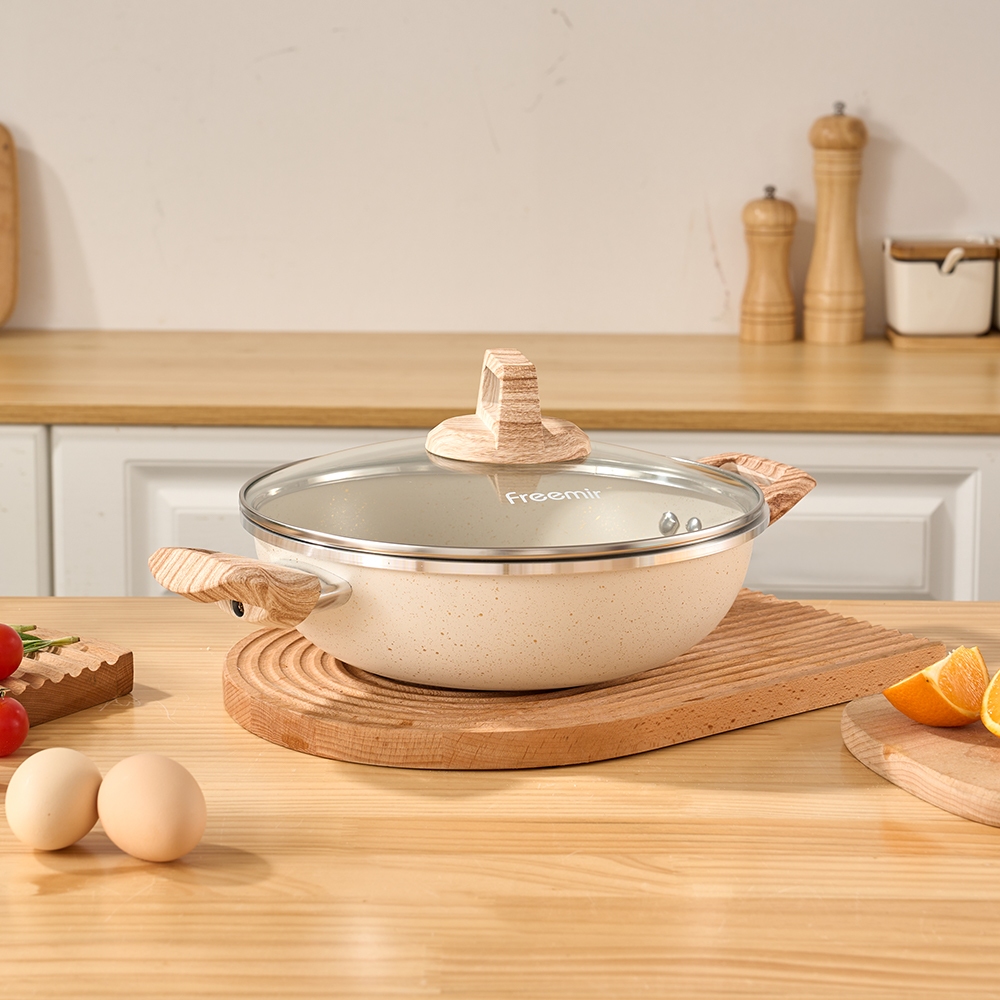 [LIVE] Panci Kuping Beige 24 Cm Anti Lengket Tanpa Minyak Premium Tutup Kaca Tebal