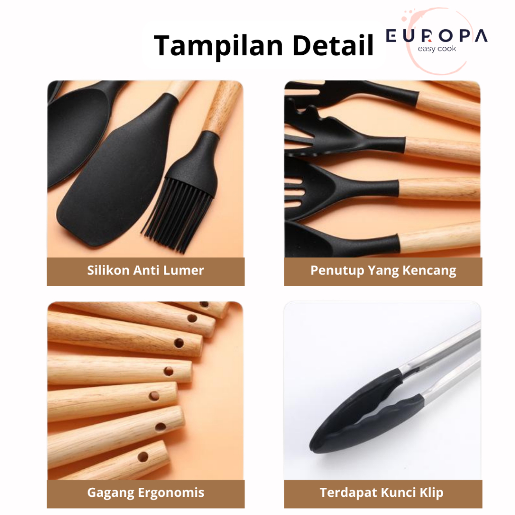 Spatula Set isi 12pcs + Wadah / Kitchen Utensils Sets Silicone / Spatula silicone EUROPA